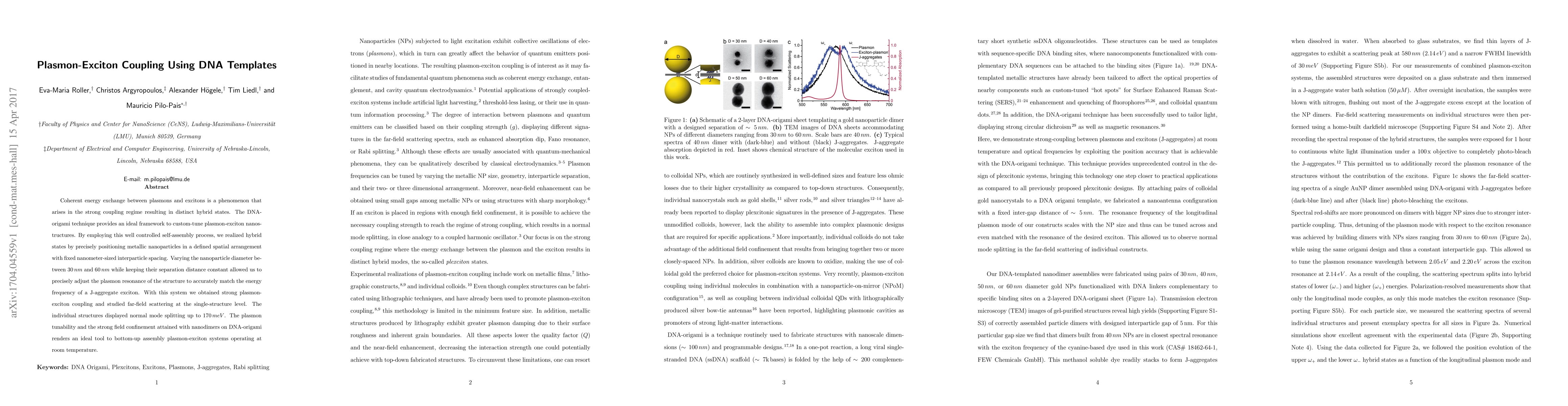 This research demonstrates strong plasmon-exciton coupling achieved by precisely positioning metallic nanoparticles on DNA templates, resulting in hybrid states and normal mode splitting up to 170 meV, offering a scalable method for assembling plasmon-exciton systems at room temperature.