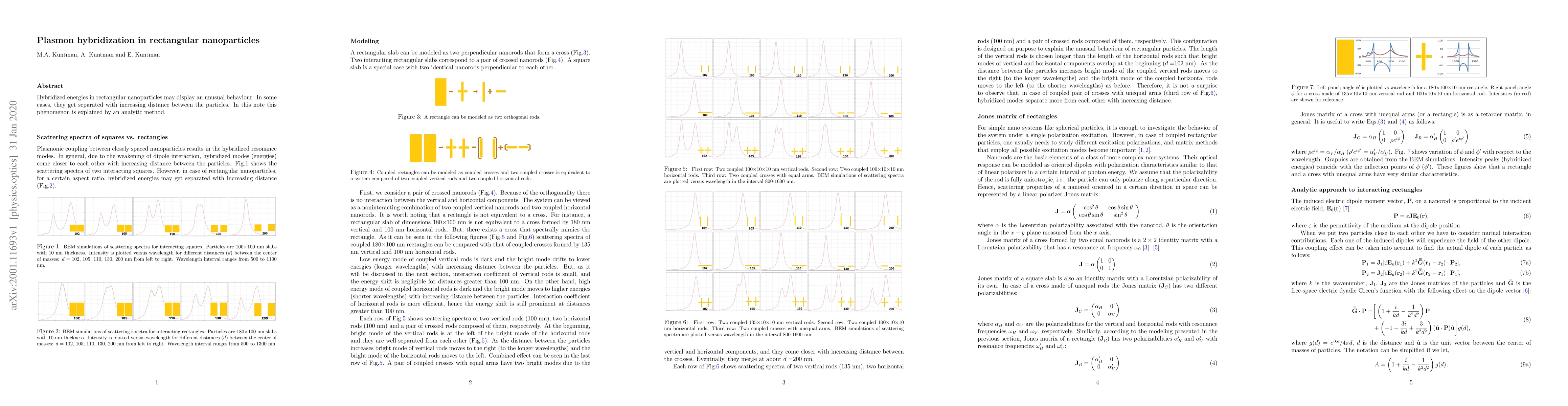Hybridized energies in rectangular nanoparticles may display an unusual behaviour. In some cases, they get separated with increasing distance between the particles. In this note this phenomenon is explained by an analytic method.