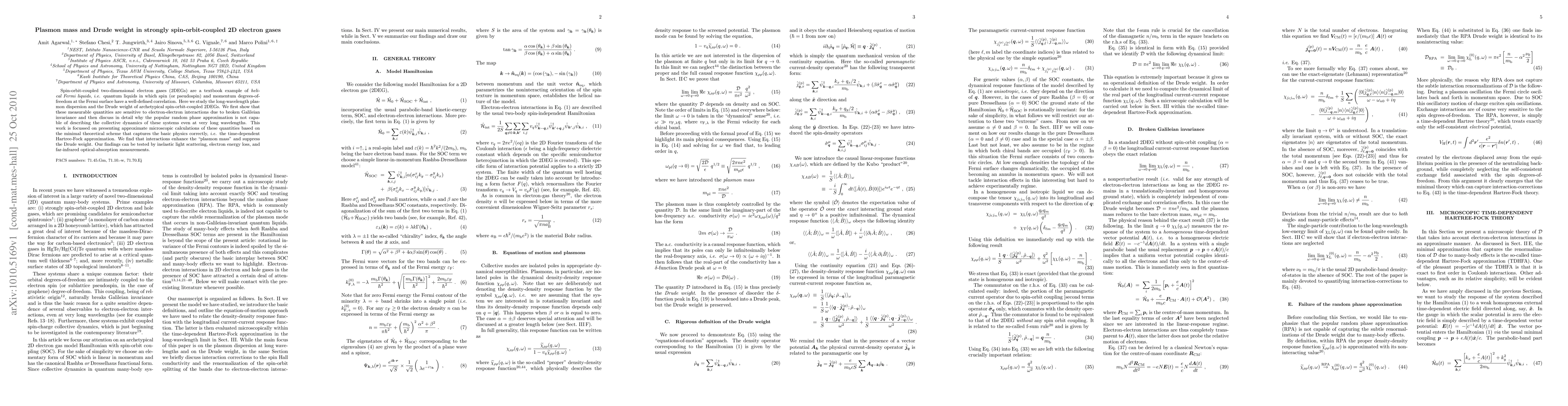 Research on spin-orbit-coupled 2D electron gases reveals that interactions between electrons enhance plasmon mass while suppressing Drude weight, offering new insights into the collective dynamics of these systems.