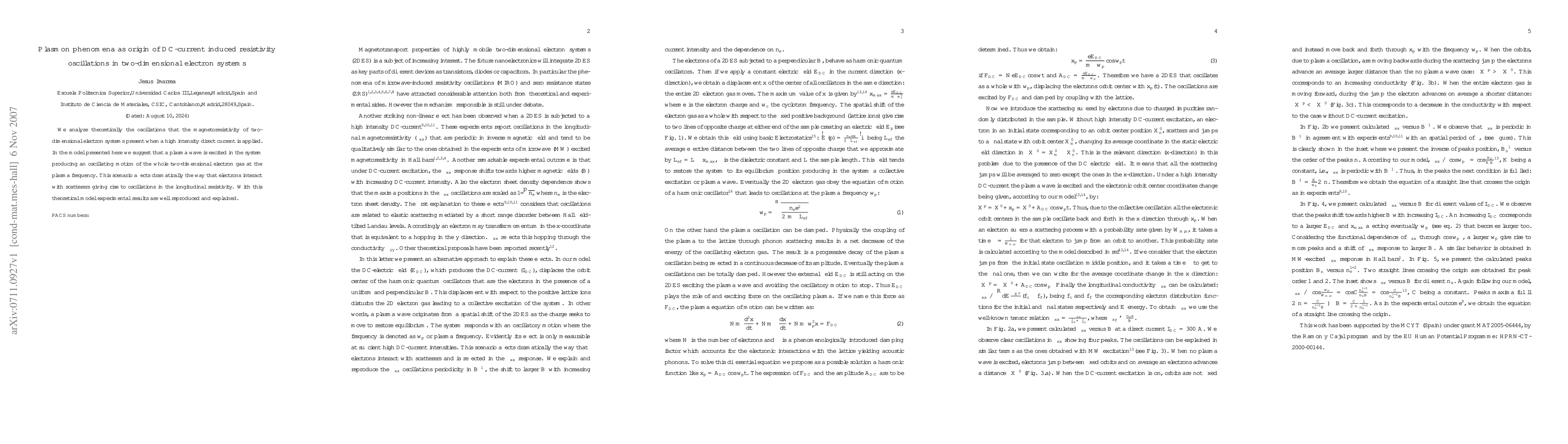 We analyze theoretically the oscillations that the magnetoresistivity of two-dimensional electron systems present when a high intensity direct current is applied. In the model presented here we suggest that a plasma wave is excited in the system producing an oscillating motion of the whole two-dimensional electron gas at the plasma frequency. This scenario affects dramatically the way that electrons interact with scatterers giving rise to oscillations in the longitudinal resistivity. With this theoretical model experimental results are well reproduced and explained.