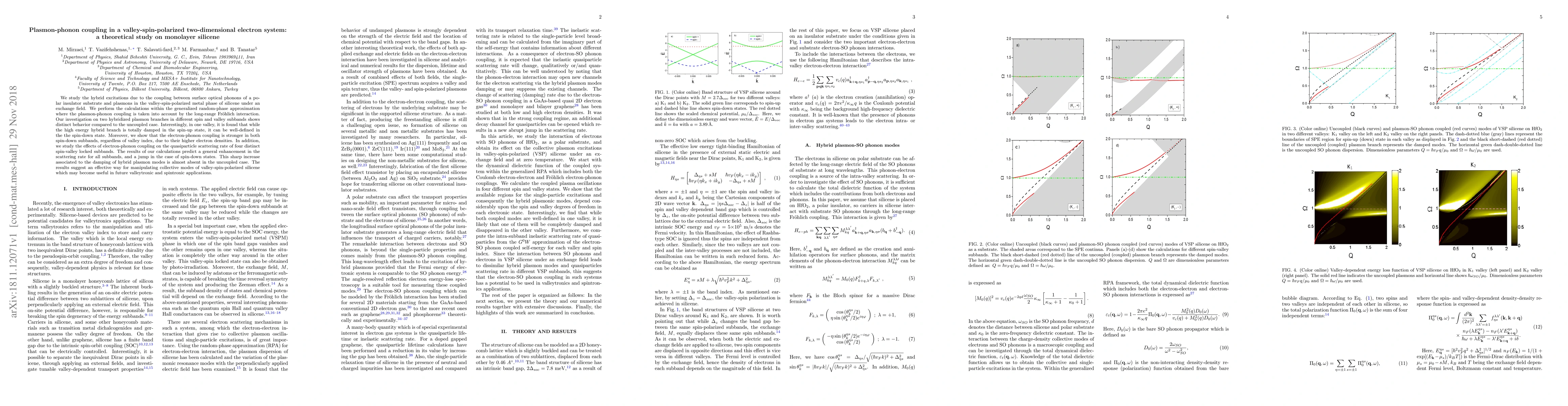 This paper investigates the coupling between plasmons and surface optical phonons in valley-spin-polarized silicene, revealing distinct hybrid excitation behaviors. The study finds that electron-phonon coupling enhances quasiparticle scattering rates, particularly in spin-down states, suggesting potential for future valleytronic and spintronic applications.