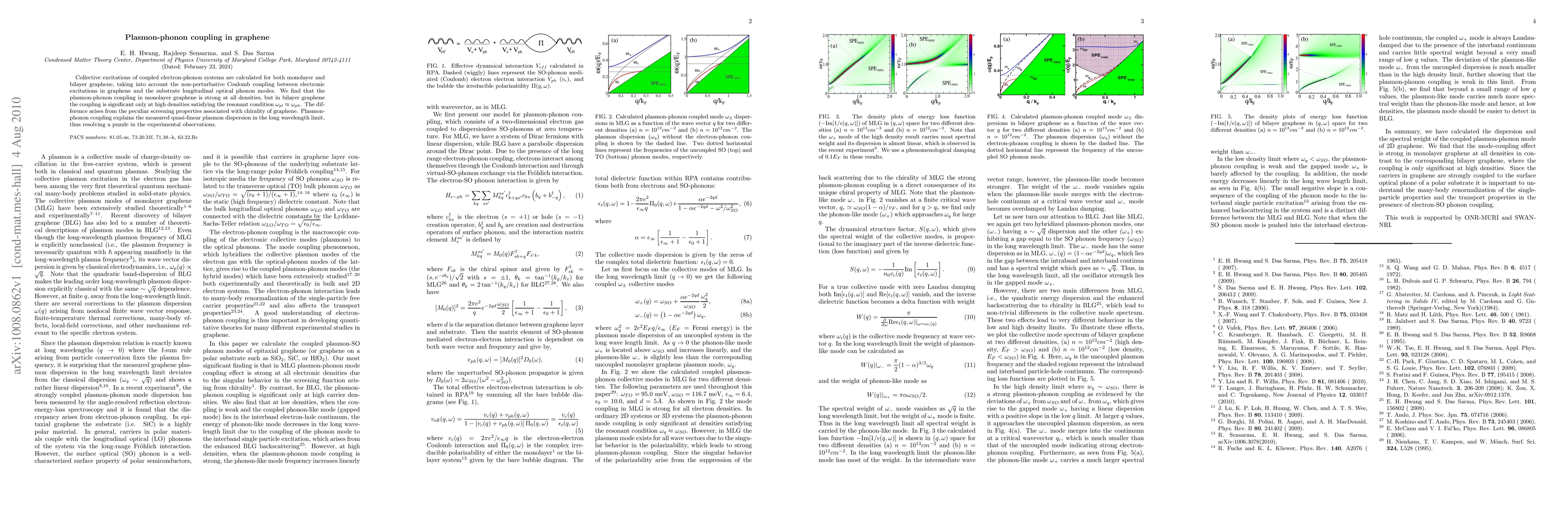The paper presents a comprehensive theoretical model for plasmon-phonon coupled modes in both monolayer and bilayer graphene, incorporating electron-SO phonon interaction via Fröhlich interaction and calculating the collective modes' dispersion and spectral weight.
