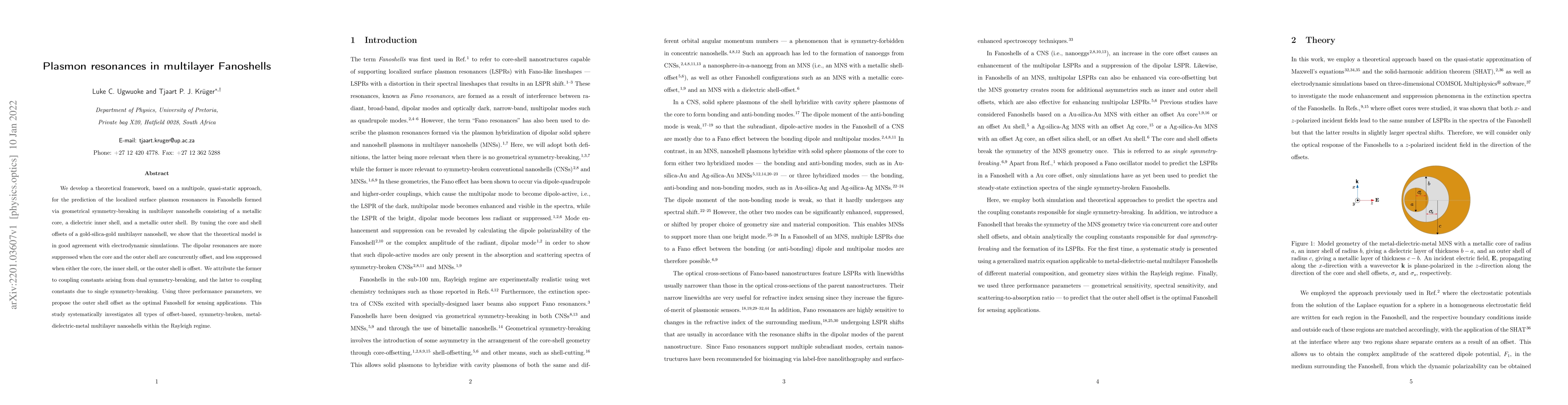 This paper develops a theoretical framework to predict localized surface plasmon resonances in multilayer Fanoshells, showing strong agreement with simulations. The study finds that core and outer shell offsets suppress dipolar resonances differently, proposing the outer shell offset as optimal for sensing applications.