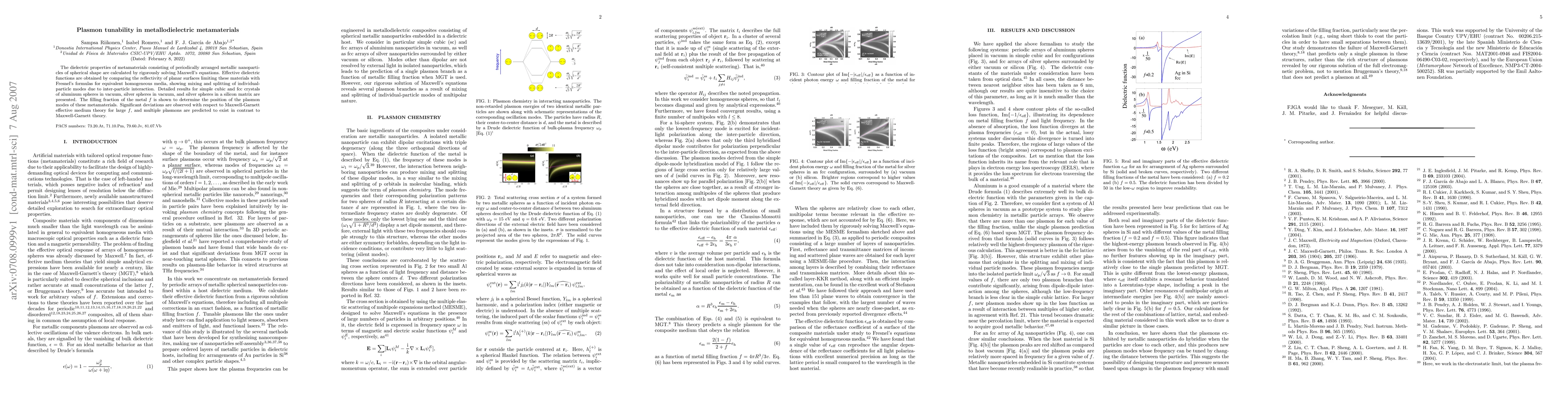 The dielectric properties of metamaterials consisting of periodically arranged metallic nanoparticles of spherical shape are calculated by rigorously solving Maxwell's equations. Effective dielectric functions are obtained by comparing the reflectivity of planar surfaces limiting these materials with Fresnel's formulas for equivalent homogeneous media, showing mixing and splitting of individual-particle modes due to inter-particle interaction. Detailed results for simple cubic and fcc crystals of aluminum spheres in vacuum, silver spheres in vacuum, and silver spheres in a silicon matrix are presented. The filling fraction of the metal f is shown to determine the position of the plasmon modes of these metamaterials. Significant deviations are observed with respect to Maxwell-Garnett effective medium theory for large f, and multiple plasmons are predicted to exist in contrast to Maxwell-Garnett theory.