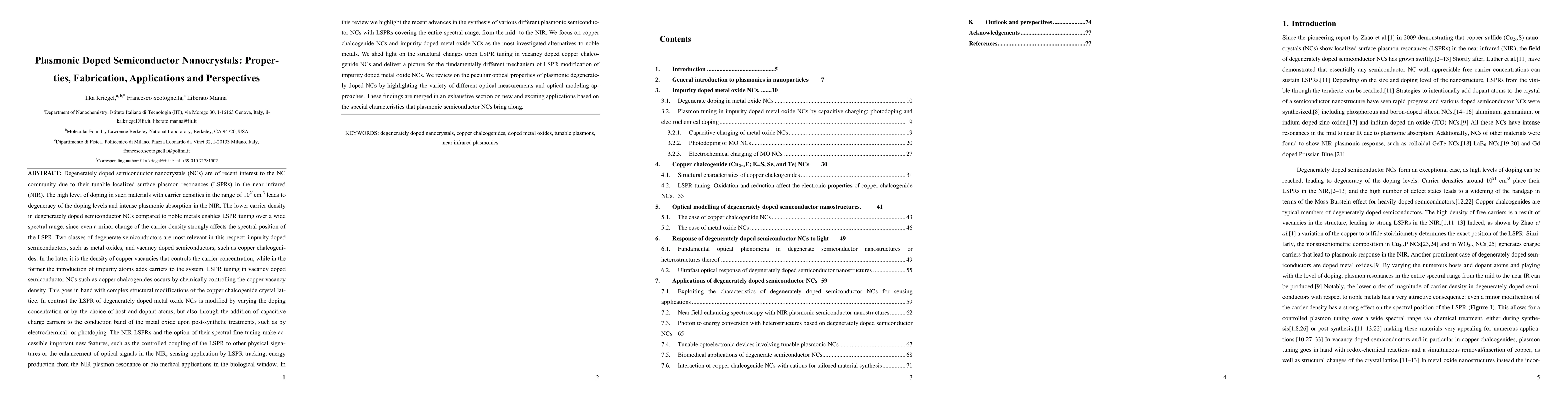 This paper explores degenerately doped semiconductor nanocrystals, particularly copper chalcogenide and impurity doped metal oxide NCs, for their tunable localized surface plasmon resonances in the NIR. The study highlights the unique optical properties and potential applications of these nanocrystals.