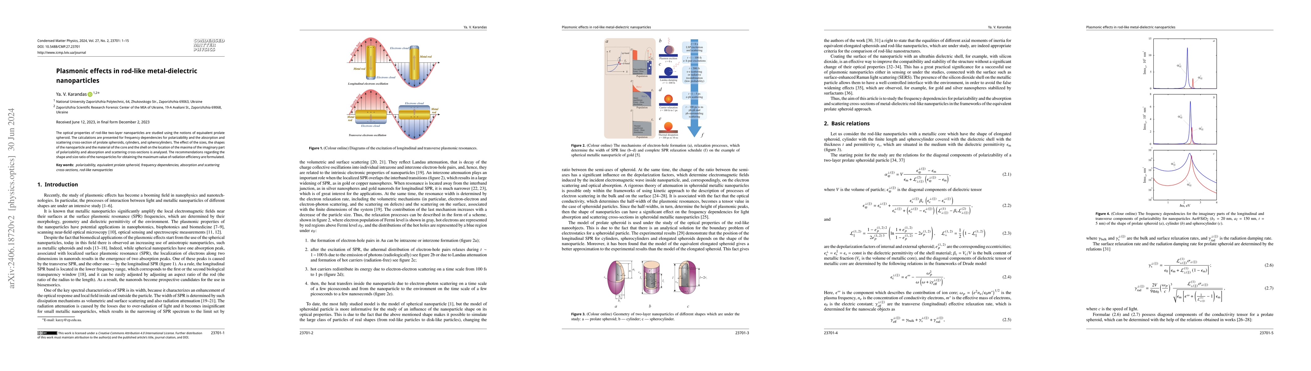 This paper investigates the optical properties of rod-like metal-dielectric nanoparticles using spheroidal models, analyzing how size, shape, and material composition affect scattering and absorption cross-sections, and provides guidelines for maximizing radiation efficiency.