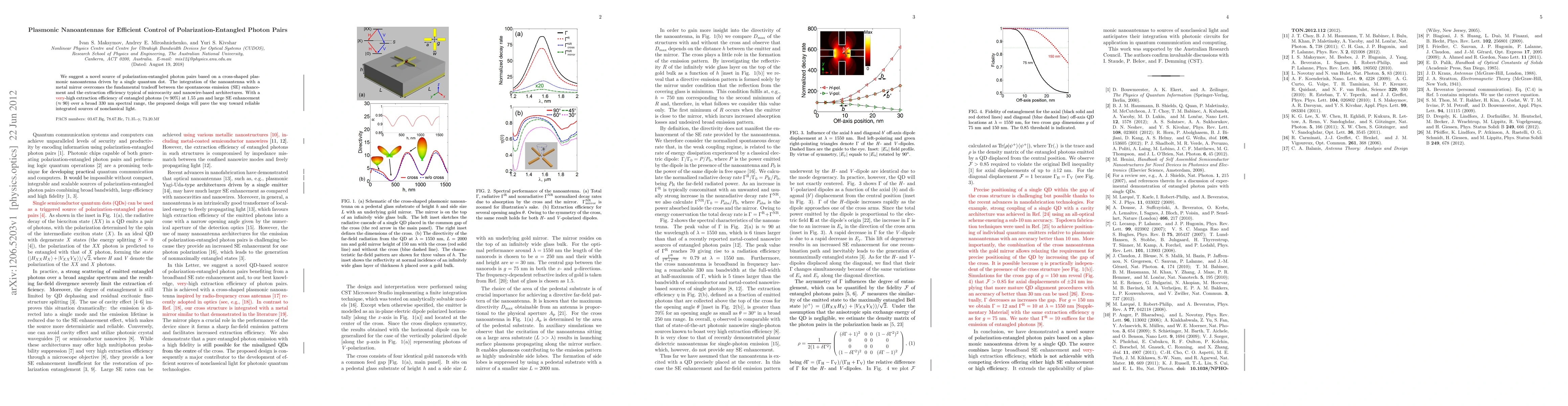 This paper proposes a novel source of polarization-entangled photon pairs using a cross-shaped plasmonic nanoantenna driven by a quantum dot, achieving high extraction efficiency (~90%) and significant spontaneous emission enhancement (~90) over a broad spectral range, overcoming typical tradeoffs in microcavity and nanowire designs.