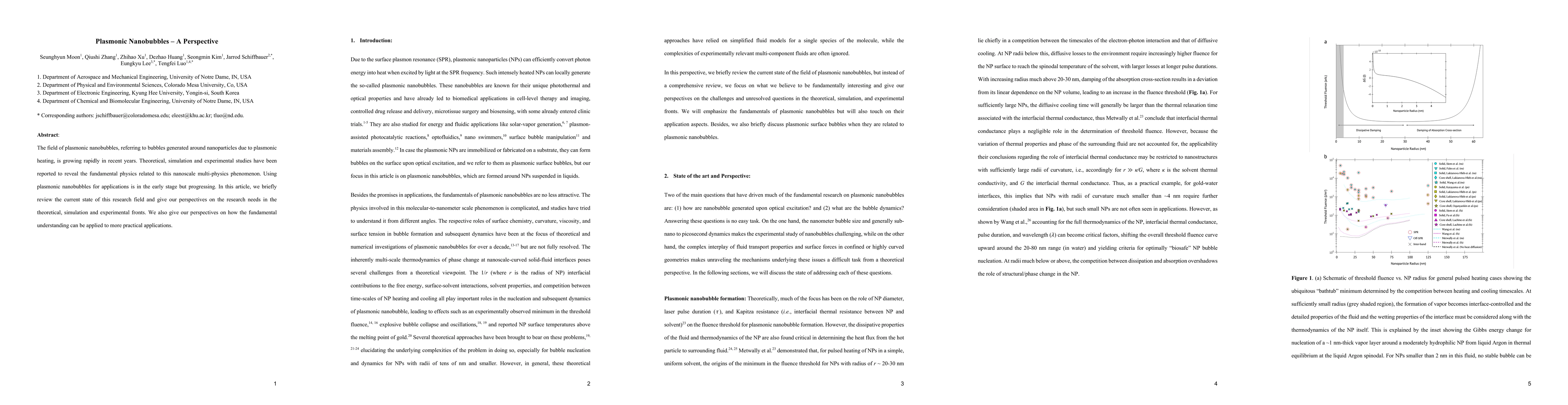 The field of plasmonic nanobubbles, referring to bubbles generated around nanoparticles due to plasmonic heating, is growing rapidly in recent years. Theoretical, simulation and experimental studies have been reported to reveal the fundamental physics related to this nanoscale multi-physics phenomenon. Using plasmonic nanobubbles for applications is in the early stage but progressing. In this article, we briefly review the current state of this research field and give our perspectives on the research needs in the theoretical, simulation and experimental fronts. We also give our perspectives on how the fundamental understanding can be applied to more practical applications.
