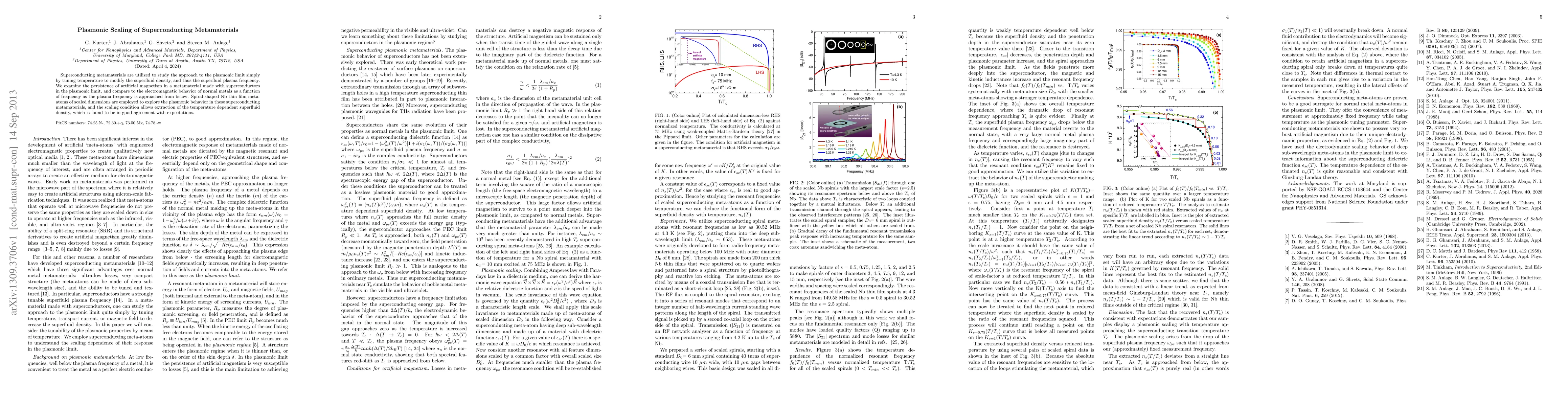 Superconducting metamaterials are utilized to study the approach to the plasmonic limit simply by tuning temperature to modify the superfluid density, and thus the superfluid plasma frequency. We examine the persistence of artificial magnetism in a metamaterial made with superconductors in the plasmonic limit, and compare to the electromagnetic behavior of normal metals as a function of frequency as the plasma frequency is approached from below. Spiral-shaped Nb thin film meta-atoms of scaled dimensions are employed to explore the plasmonic behavior in these superconducting metamaterials, and the scaling condition allows extraction of the temperature dependent superfluid density, which is found to be in good agreement with expectations.
