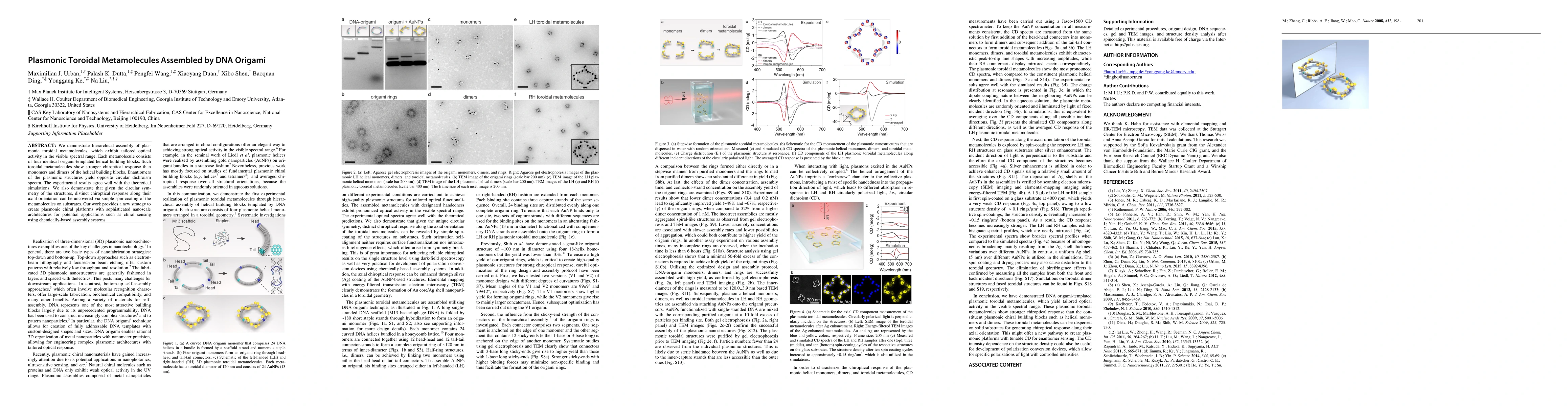 The paper presents a novel method for assembling plasmonic toroidal metamolecules using DNA origami, demonstrating enhanced chiroptical response and tailored optical activity in the visible spectral range.