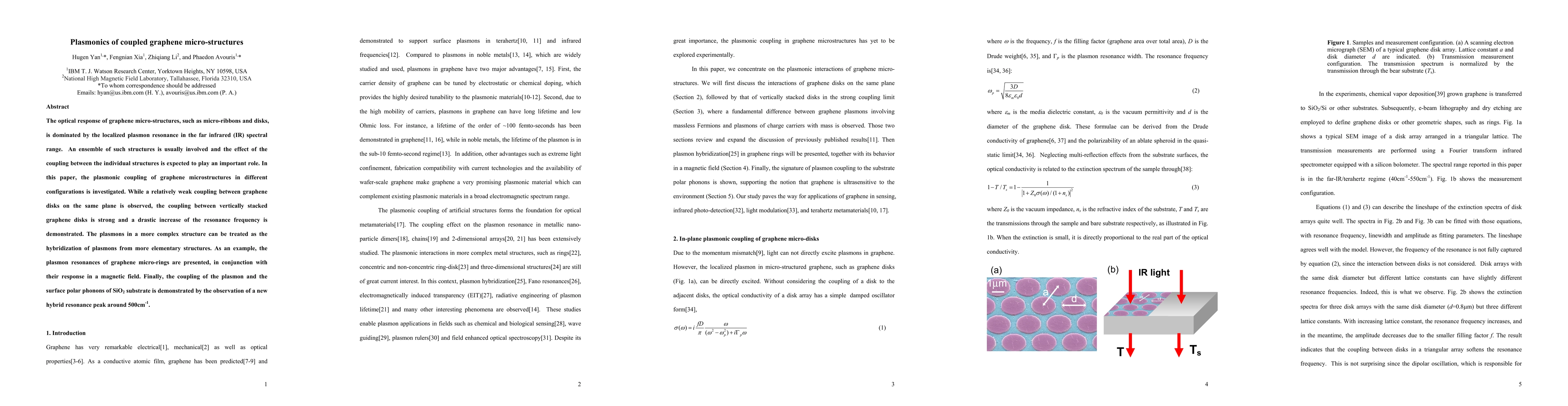The research investigates plasmonic coupling of graphene micro-structures in different configurations.