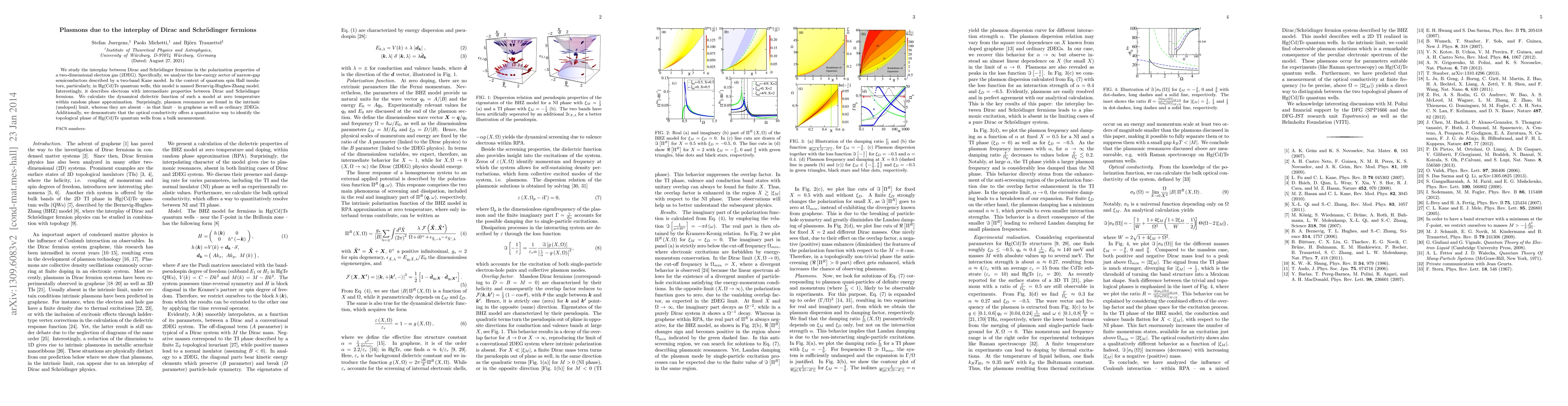 We study the interplay between Dirac and Schr\"odinger fermions in the polarization properties of a two-dimensional electron gas (2DEG). Specifically, we analyze the low-energy sector of narrow-gap semiconductors described by a two-band Kane model. In the context of quantum spin Hall insulators, particularly, in Hg(Cd)Te quantum wells, this model is named Bernevig-Hughes-Zhang model. Interestingly, it describes electrons with intermediate properties between Dirac and Schr\"odinger fermions. We calculate the dynamical dielectric function of such a model at zero temperature within random phase approximation. Surprisingly, plasmon resonances are found in the intrinsic (undoped) limit, whereas they are absent - in that limit - in graphene as well as ordinary 2DEGs. Additionally, we demonstrate that the optical conductivity offers a quantitative way to identify the topological phase of Hg(Cd)Te quantum wells from a bulk measurement.