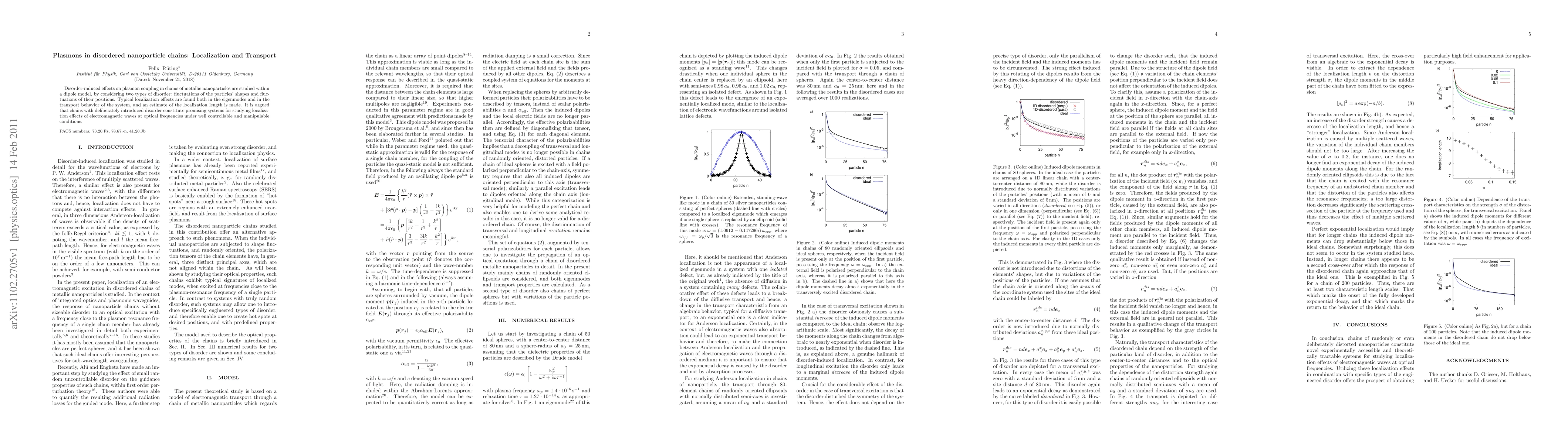 Research shows that intentionally introducing disorder into chains of metallic nanoparticles can facilitate the study of plasmon localization effects in a controlled manner. This discovery makes these systems promising for studying electromagnetic wave behavior at optical frequencies.