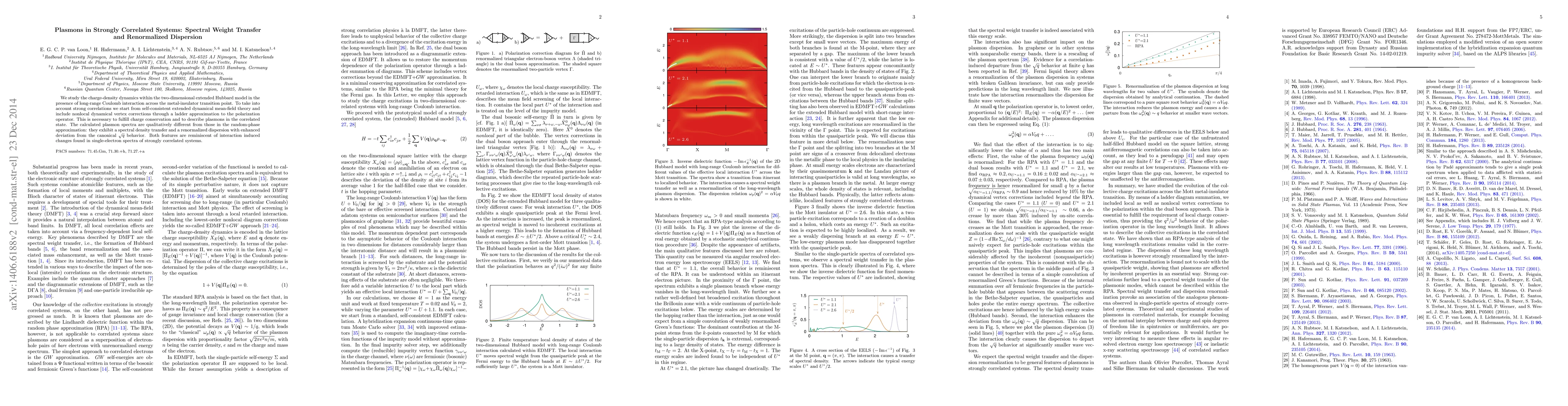 We study the charge-density dynamics within the two-dimensional extended Hubbard model in the presence of long-range Coulomb interaction across the metal-insulator transition point. To take into account strong correlations we start from self-consistent extended dynamical mean-field theory and include non-local dynamical vertex corrections through a ladder approximation to the polarization operator. This is necessary to fulfill charge conservation and to describe plasmons in the correlated state. The calculated plasmon spectra are qualitatively different from those in the random-phase approximation: they exhibit a spectral density transfer and a renormalized dispersion with enhanced deviation from the canonical $\sqrt{q}$-behavior. Both features are reminiscent of interaction induced changes found in single-electron spectra of strongly correlated systems.