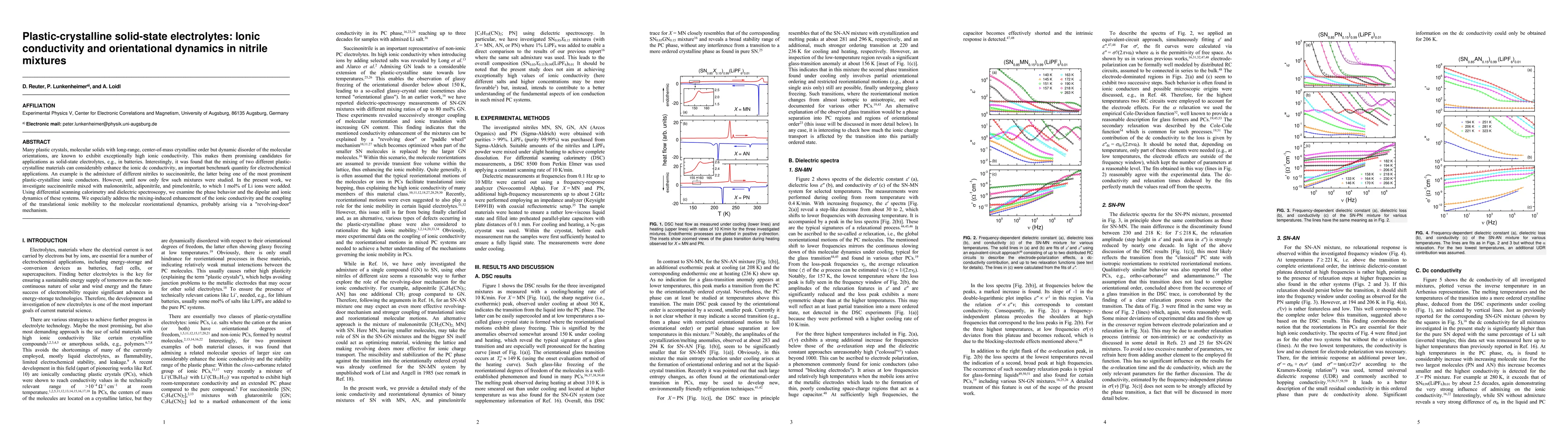 This research investigates the ionic conductivity and dynamics in plastic-crystalline solid-state electrolytes formed by mixing succinonitrile with various nitriles, adding Li ions, and examining their phase behavior and dynamics via calorimetry and spectroscopy. The study reveals a significant enhancement in ionic conductivity due to a "revolving-door" mechanism linking ionic mobility to molecular reorientation.