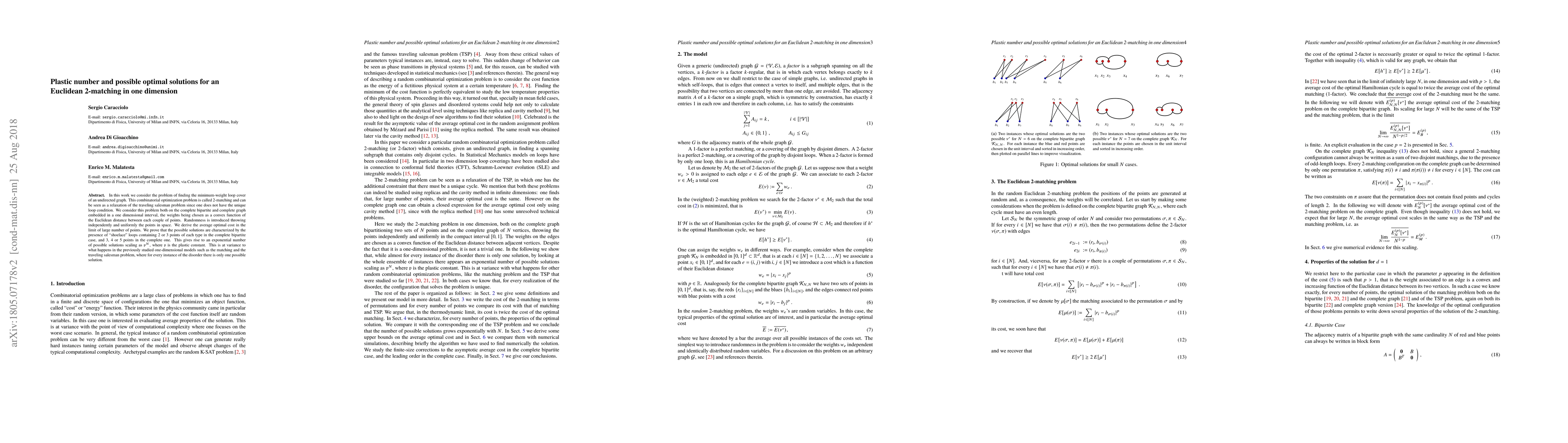 In this work we consider the problem of finding the minimum-weight loop cover of an undirected graph. This combinatorial optimization problem is called 2-matching and can be seen as a relaxation of the traveling salesman problem since one does not have the unique loop condition. We consider this problem both on the complete bipartite and complete graph embedded in a one dimensional interval, the weights being chosen as a convex function of the Euclidean distance between each couple of points. Randomness is introduced throwing independently and uniformly the points in space. We derive the average optimal cost in the limit of large number of points. We prove that the possible solutions are characterized by the presence of "shoelace" loops containing 2 or 3 points of each type in the complete bipartite case, and 3, 4 or 5 points in the complete one. This gives rise to an exponential number of possible solutions scaling as p^N , where p is the plastic constant. This is at variance to what happens in the previously studied one-dimensional models such as the matching and the traveling salesman problem, where for every instance of the disorder there is only one possible solution.