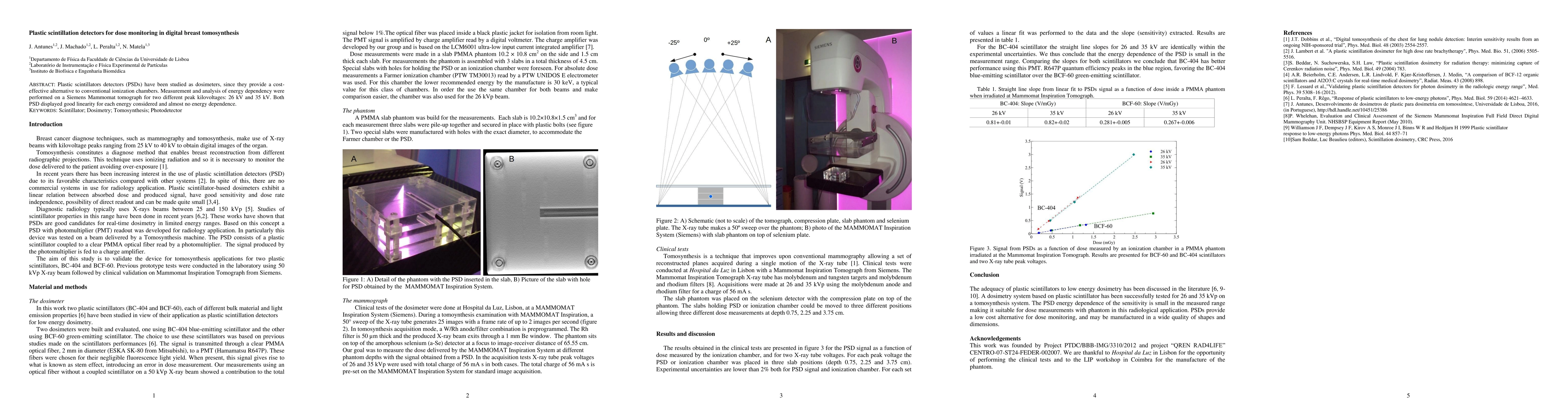 Plastic scintillation detectors showed good linearity for dose monitoring in digital breast tomosynthesis at both 26kV and 35kV peak kilovoltages, offering a cost-effective alternative to conventional ionization chambers.