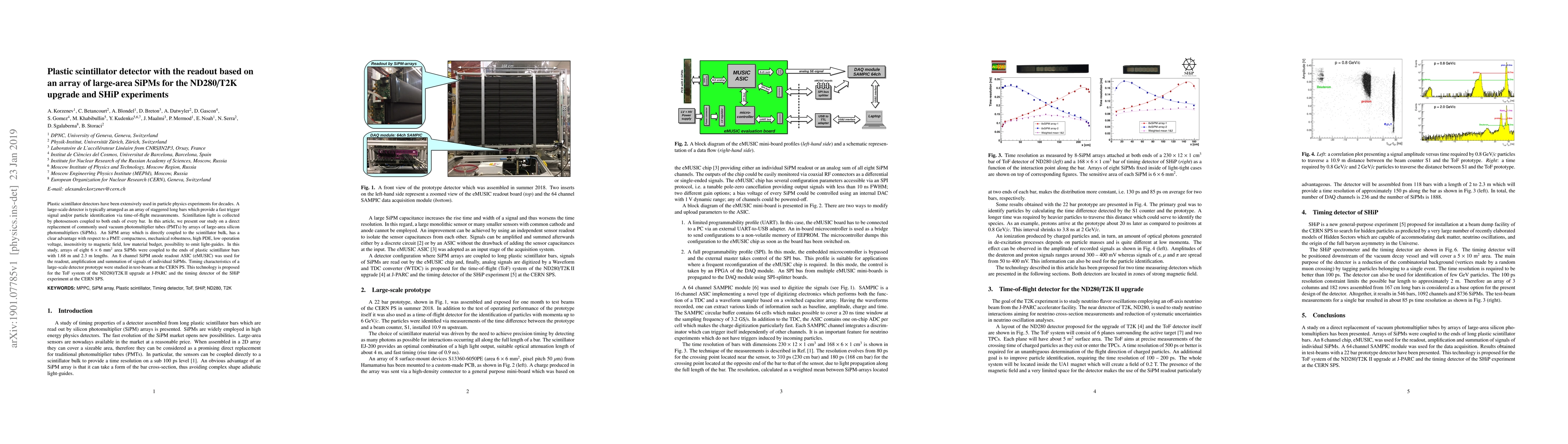 This paper presents a study on replacing traditional vacuum photomultiplier tubes with large-area silicon photomultiplier (SiPM) arrays for plastic scintillator detectors in particle physics experiments. The SiPM arrays offer advantages such as compactness, robustness, and low operation voltage, and were tested in prototype detectors for the ND280/T2K upgrade and SHiP experiment.