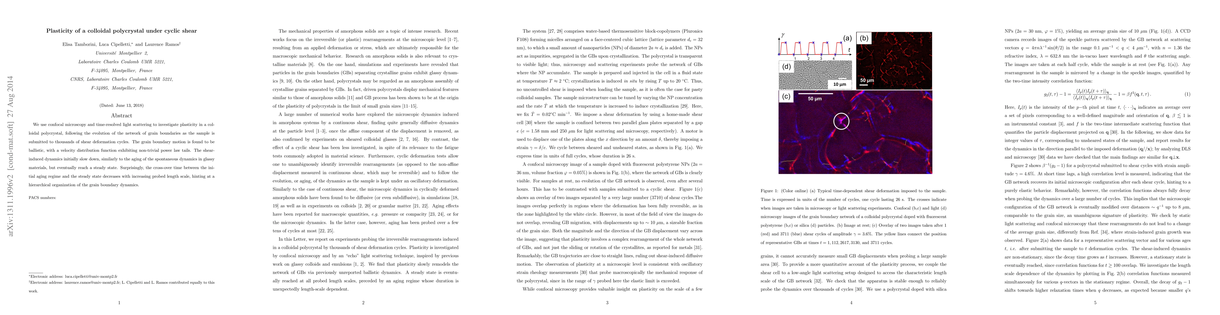 Researchers investigated plasticity in a colloidal polycrystal under cyclic shear, finding grain boundary motion to be ballistic with power law tails. The study suggests a hierarchical organization of grain boundary dynamics.