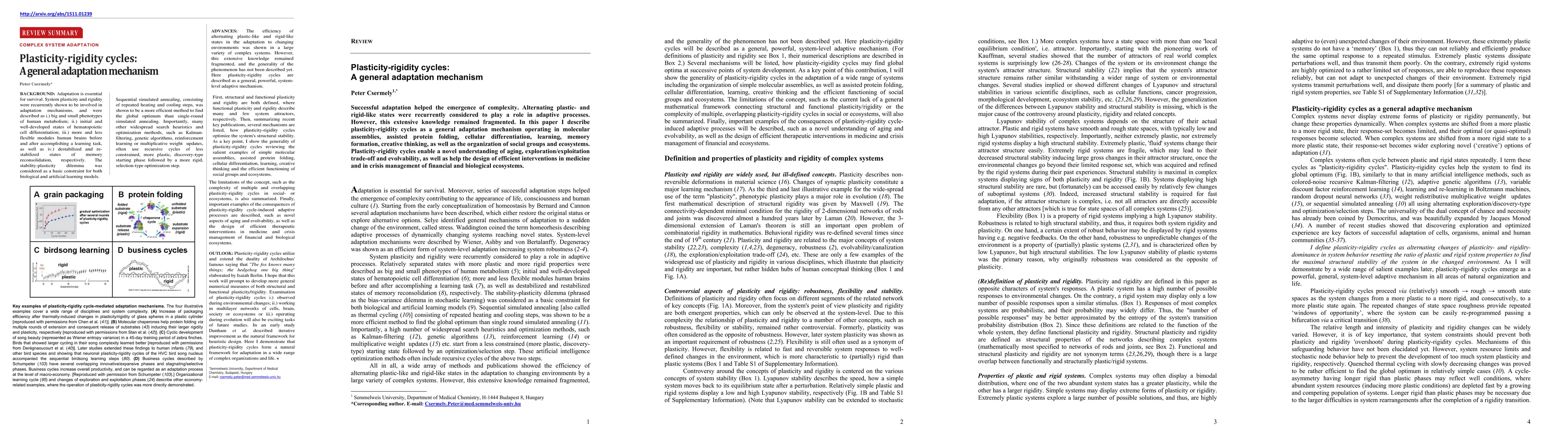 This paper proposes plasticity-rigidity cycles as a universal adaptation mechanism across various biological and social systems, facilitating processes like protein folding, learning, and ecosystem management. It provides insights into aging, trade-offs, and evolvability, and suggests applications in medicine and crisis management.