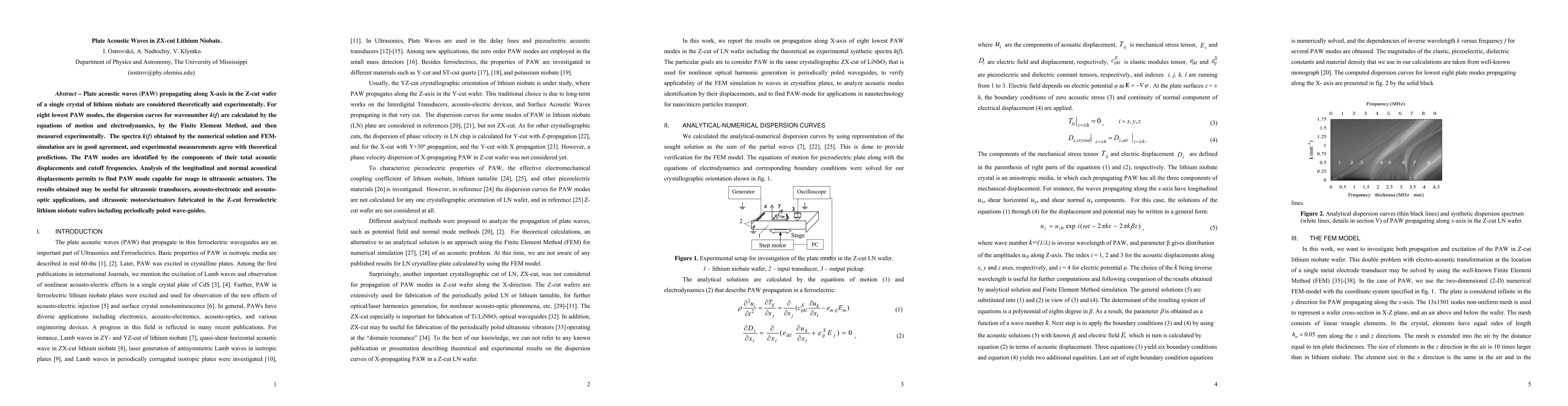 Researchers studied plate acoustic waves in Z-cut lithium niobate, finding a good agreement between theoretical predictions and experimental measurements, with potential applications in ultrasonic actuators and transducers.