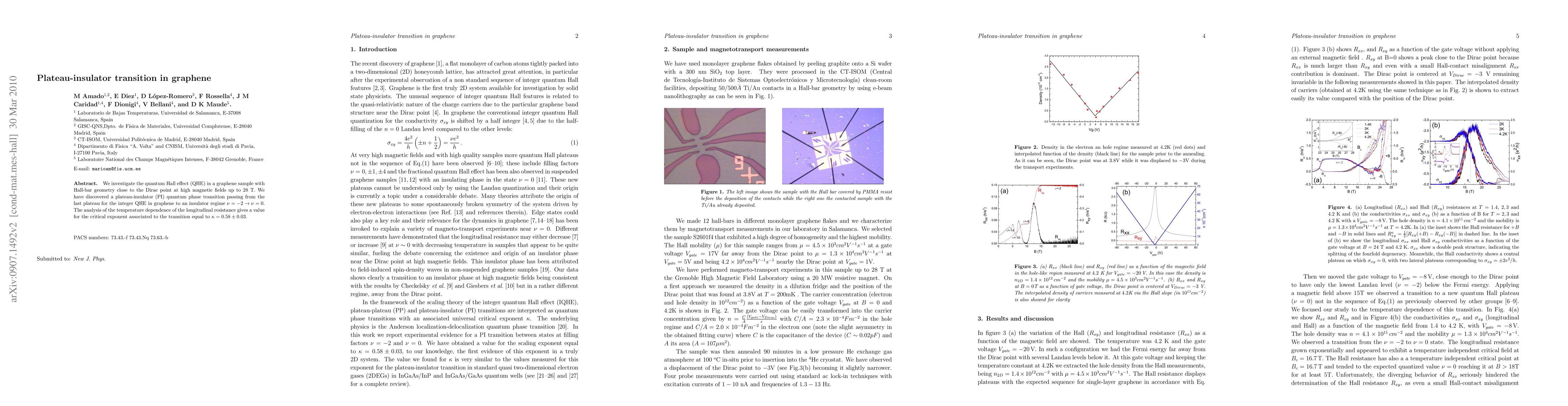 This study investigates the quantum Hall effect in graphene under high magnetic fields, revealing a metal-insulator transition from filling factor $\nu=-2$ to $\nu=0$ with a scaling exponent $\kappa=0.57$, consistent with standard quasi two-dimensional electron and hole gases.
