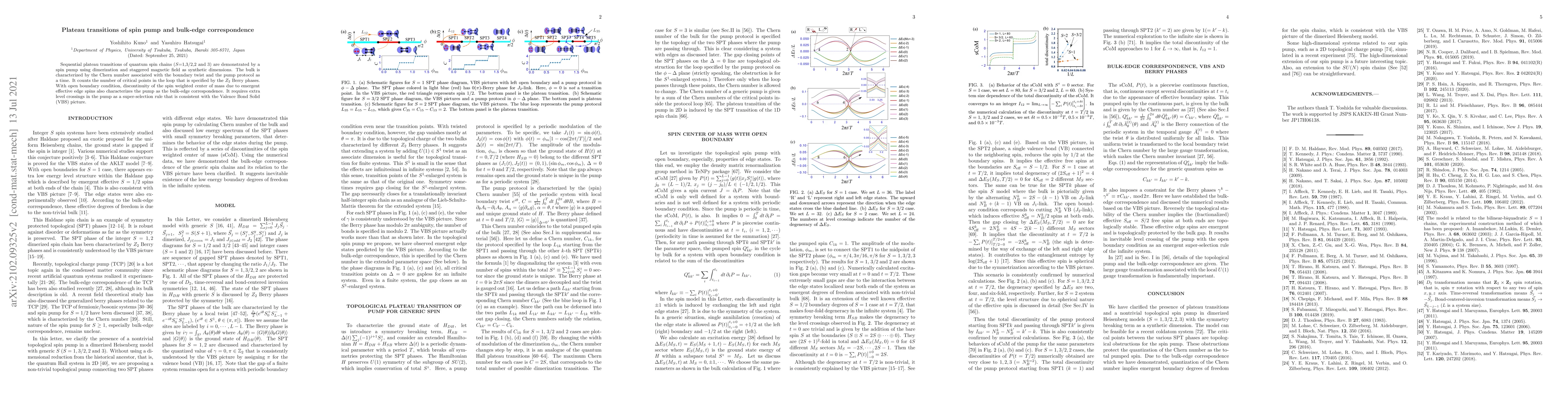 Sequential plateau transitions of quantum spin chains ($S$=1,3/2,2 and 3) are demonstrated by a spin pump using dimerization and staggered magnetic field as synthetic dimensions. The bulk is characterized by the Chern number associated with the boundary twist and the pump protocol as a time. It counts the number of critical points in the loop that is specified by the $Z_2$ Berry phases. With open boundary condition, discontinuity of the spin weighted center of mass due to emergent effective edge spins also characterizes the pump as the bulk edge correspondence. It requires extra level crossings in the pump as a super-selection rule that is consistent with the Valence Bond Solid (VBS) picture.