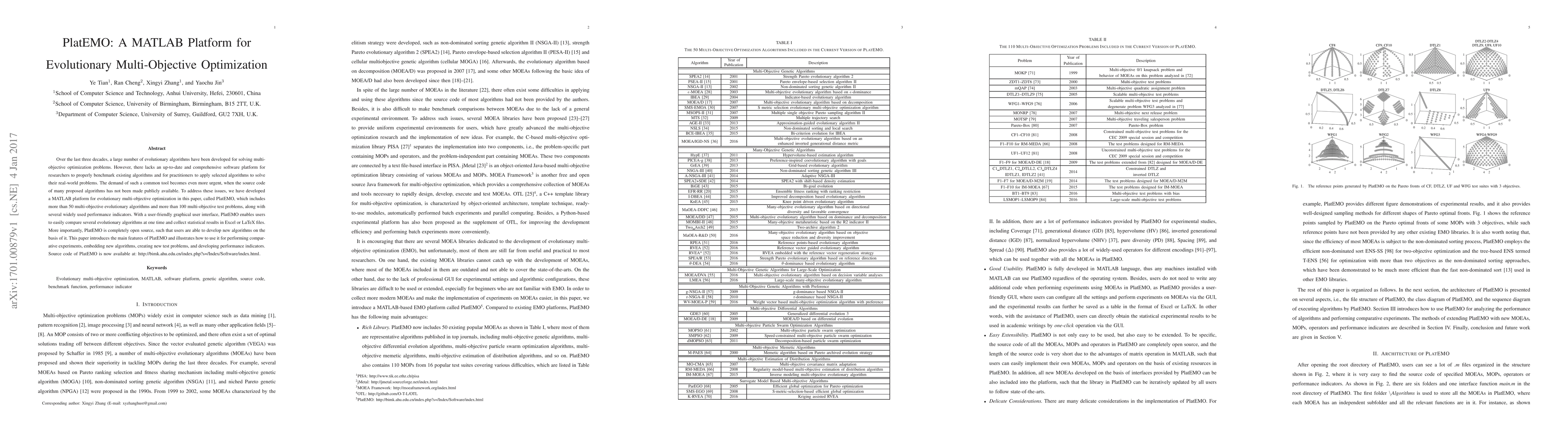 Researchers developed PlatEMO, a comprehensive MATLAB platform for solving multi-objective optimization problems, providing over 50 algorithms and 100 test problems in an open-source format.