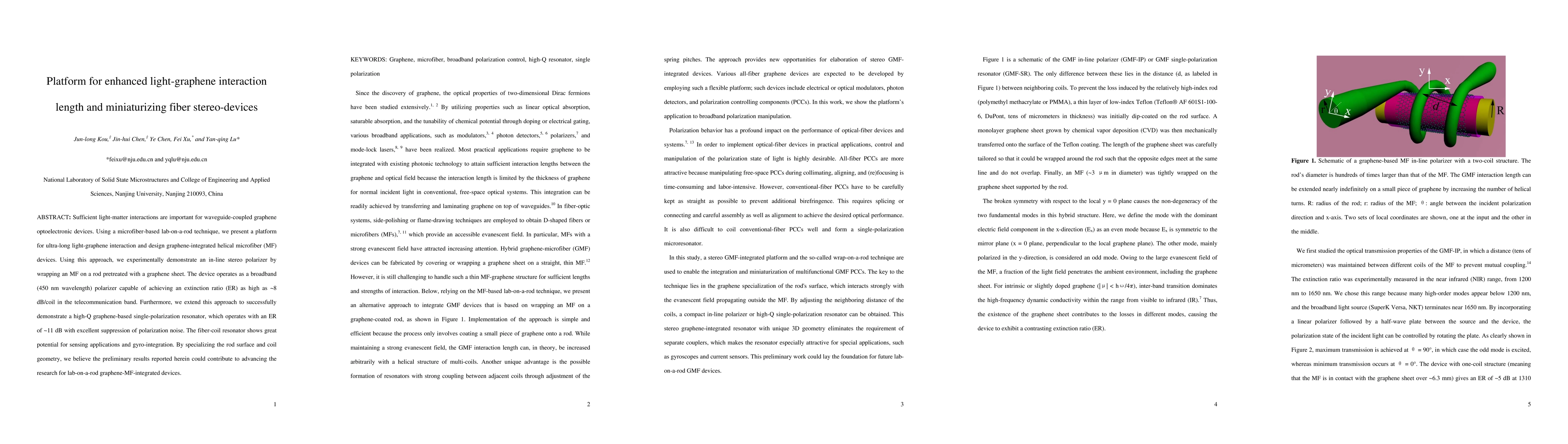 The paper presents a novel microfiber-based lab-on-a-rod technique for creating a platform with ultra-long light-graphene interaction, leading to the successful demonstration of graphene-integrated helical microfiber devices.