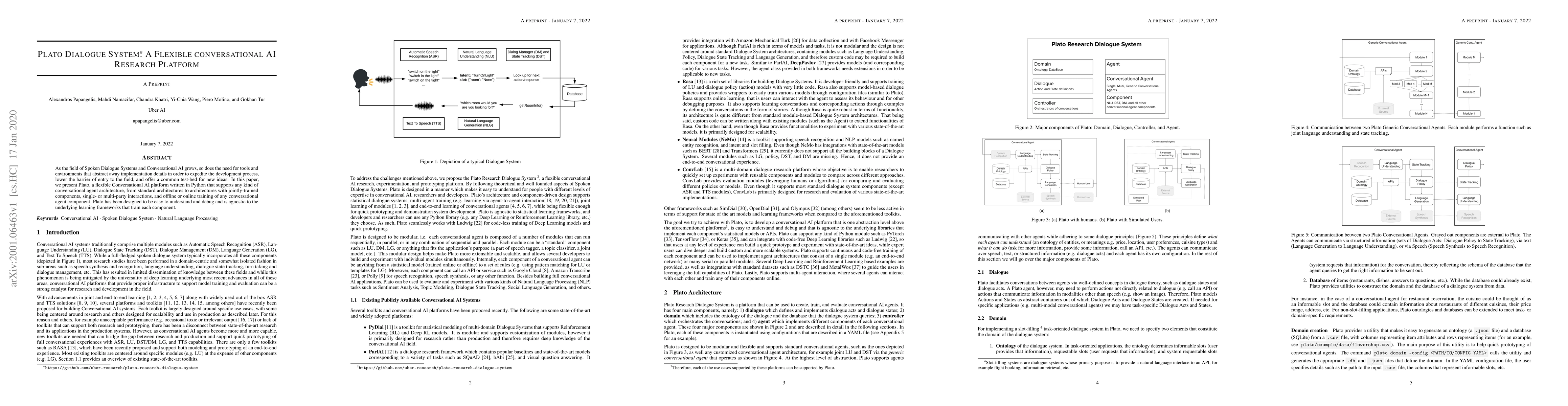 Plato is a versatile Python-based Conversational AI platform designed to facilitate the development of various conversational agent architectures, offering an easy-to-understand environment for debugging and testing new ideas without being tied to specific learning frameworks. It supports diverse agent architectures, including jointly-trained components and both single- and multi-party interactions.