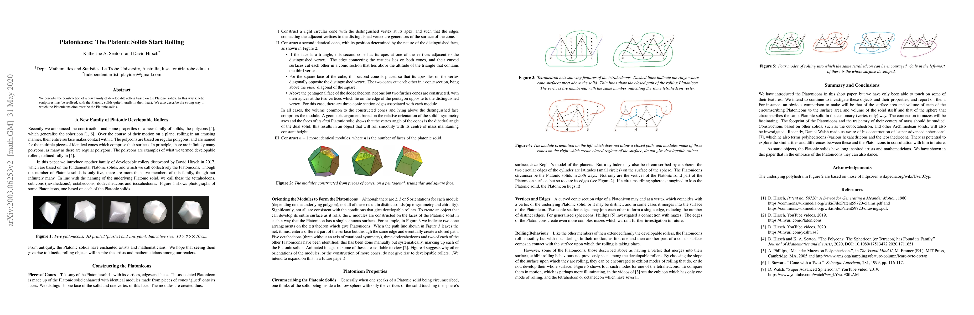 The research introduces a novel family of developable rollers inspired by Platonic solids, enabling the creation of kinetic sculptures where these solids form the core mechanism. Additionally, it highlights the tight geometric relationship between these rollers and the Platonic solids they emulate.