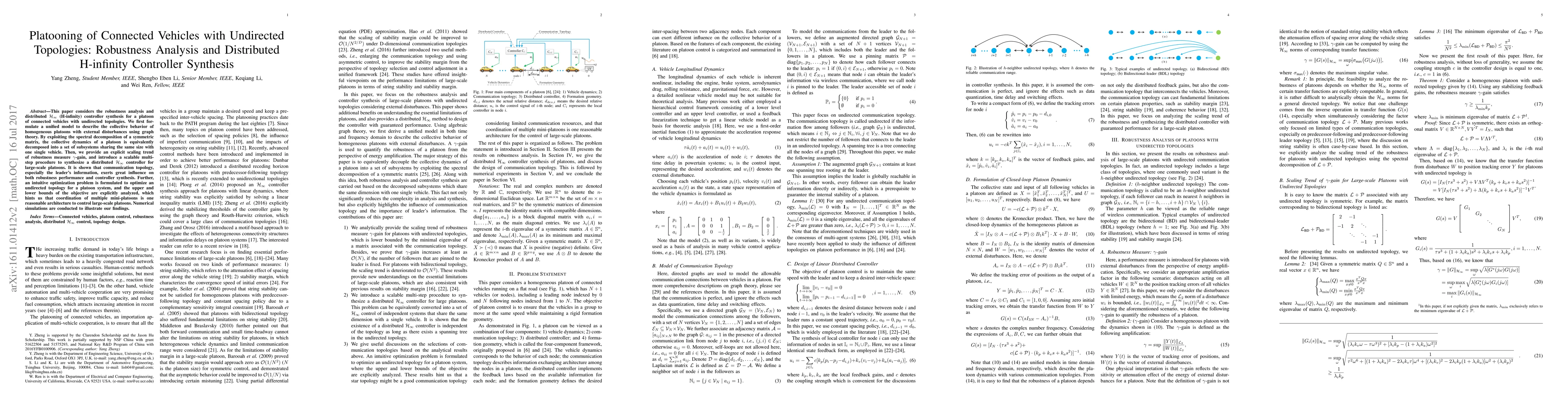 This paper develops a method to analyze and control the collective behavior of connected vehicles with undirected topologies, providing insights into robustness and distributed controller synthesis.