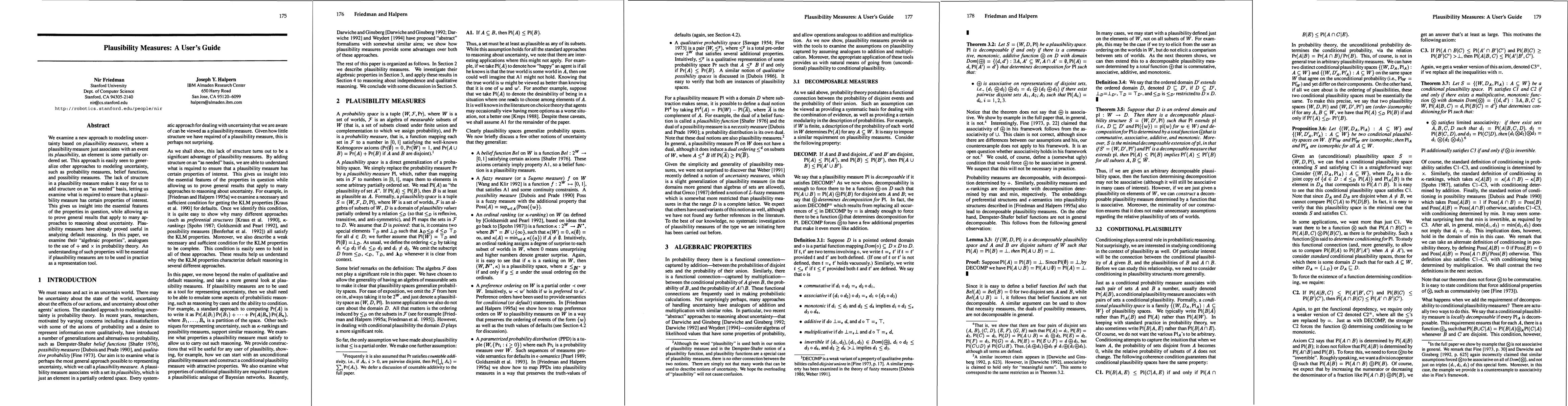 This paper introduces plausibility measures as a flexible framework for modeling uncertainty, generalizing approaches like probability and belief functions. It explores the algebraic properties of plausibility measures, which are crucial for practical applications in default reasoning and other uncertainty-based analyses.