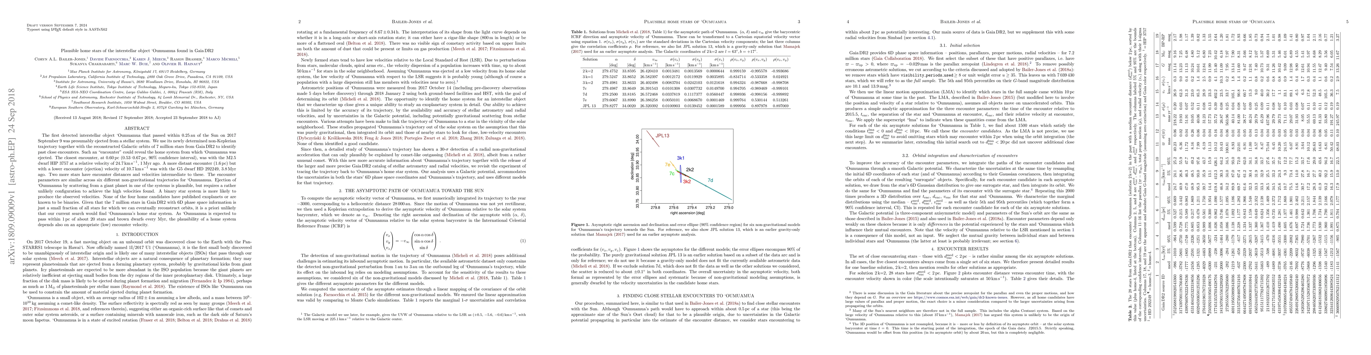 Researchers used Gaia DR2 data to identify possible home stars of 'Oumuamua, a comet-like object from space, by analyzing its trajectory and past close encounters with nearby stars.