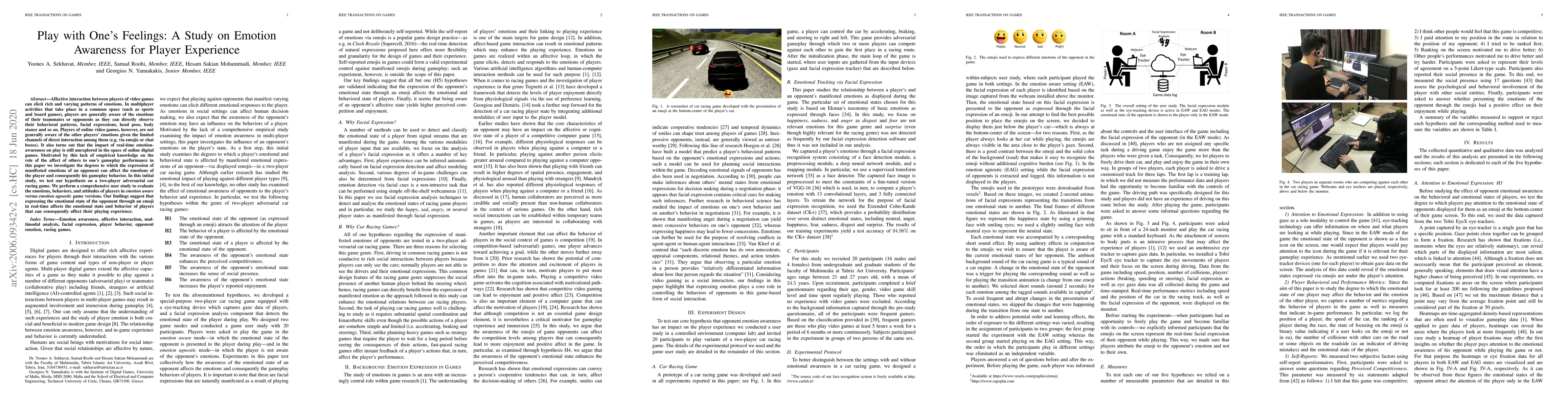 Affective interaction between players of video games can elicit rich and varying patterns of emotions. In multiplayer activities that take place in a common space (such as sports and board games), players are generally aware of the emotions of their teammates or opponents as they can directly observe their behavioral patterns, facial expressions, head pose, body stance and so on. Players of online video games, however, are not generally aware of the other players' emotions given the limited channels of direct interaction among them (e.g. via emojis or chat boxes). It also turns out that the impact of real-time emotionawareness on play is still unexplored in the space of online digital games. Motivated by this lack of empirical knowledge on the role of the affect of others to one's gameplay performance in this paper we investigate the degrees to which the expression of manifested emotions of an opponent can affect the emotions of the player and consequently his gameplay behavior. In this initial study, we test our hypothesis on a two-player adversarial car racing game. We perform a comprehensive user study to evaluate the emotions, behaviors, and attitudes of players in emotion aware versus emotion agnostic game versions. Our findings suggest that expressing the emotional state of the opponent through an emoji in real-time affects the emotional state and behavior of players that can consequently affect their playing experience.