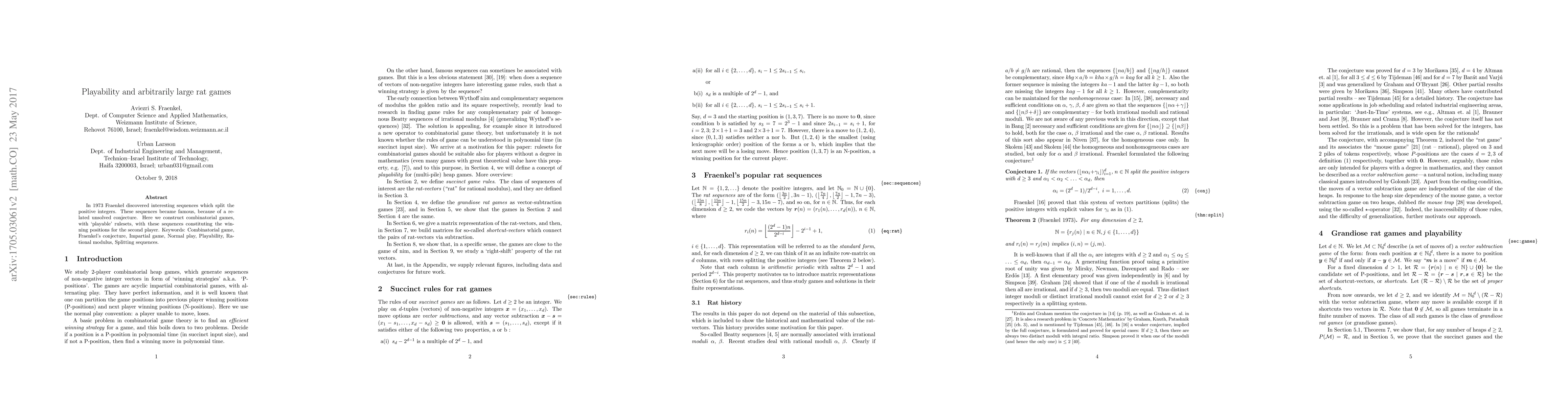 In 1973 Fraenkel discovered interesting sequences which split the positive integers. These sequences became famous, because of a related unsolved conjecture. Here we construct combinatorial games, with `playable' rulesets, with these sequences constituting the winning positions for the second player. Keywords: Combinatorial game, Fraenkel's conjecture, Impartial game, Normal play, Playability, Rational modulus, Splitting sequences