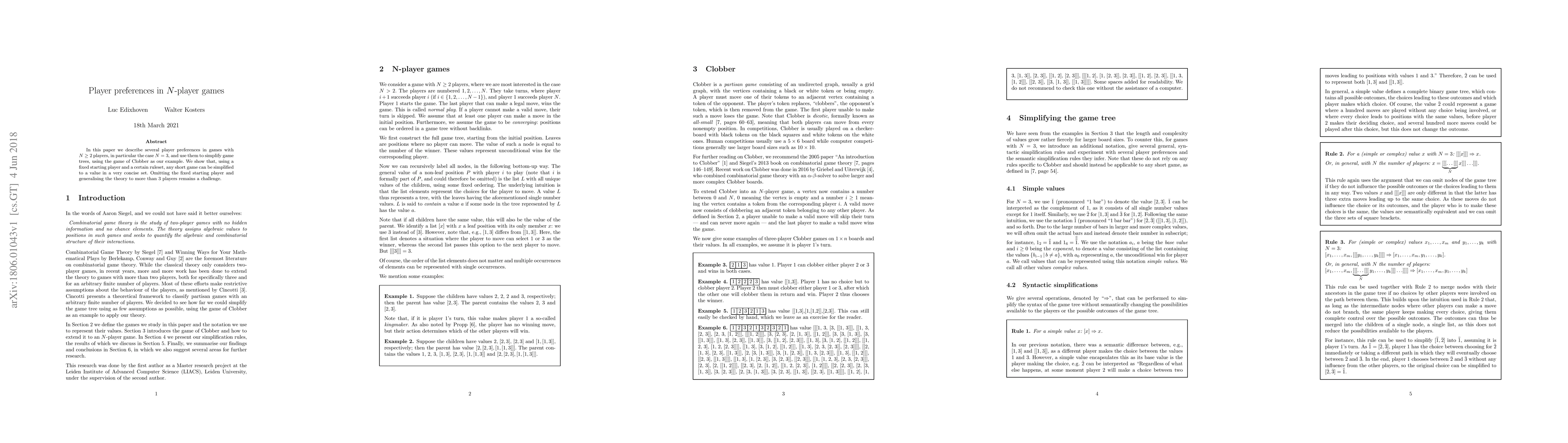This paper explores player preferences in $N$-player games, focusing on $N=3$ with the game of Clobber as an example, and demonstrates how these preferences can simplify game trees into concise values. The challenge remains in generalizing the theory to more than three players.