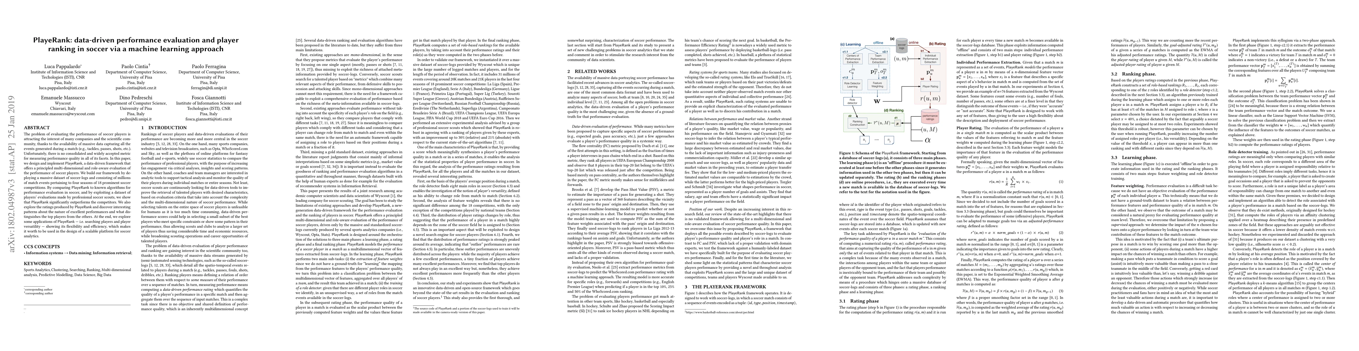 PlayeRank is a machine learning framework for evaluating soccer players' performance based on multi-dimensional and role-aware metrics derived from extensive match data. It outperforms existing algorithms and reveals insights into top player distinctions, showcasing potential applications in player search and versatility analysis.