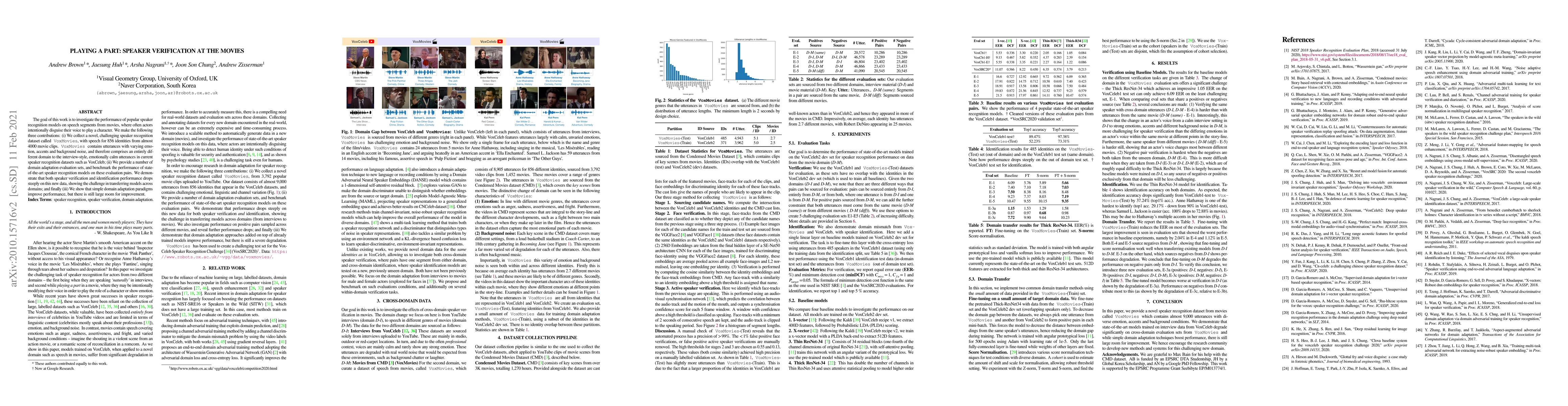 Researchers create a new dataset for speaker recognition in movies, where actors disguise their voices, to test how well current models perform. They find that simple domain adaptation methods can improve performance but still leave room for improvement.