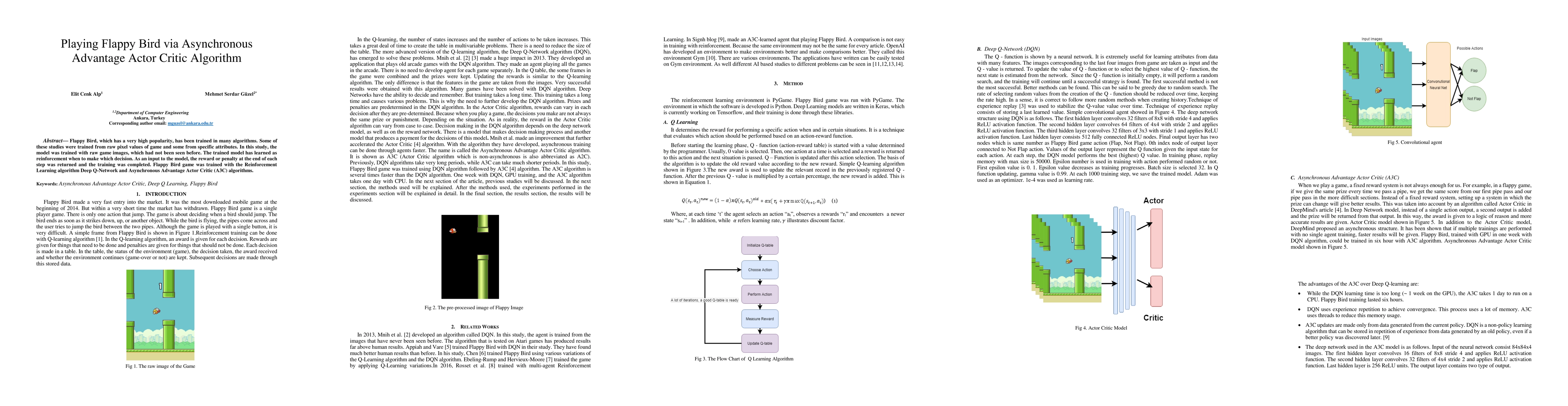 This study trains the Flappy Bird game using raw pixel images as input with the A3C algorithm, achieving decision-making through reinforcement learning. The model learns optimal actions based on the rewards or penalties received after each game step.