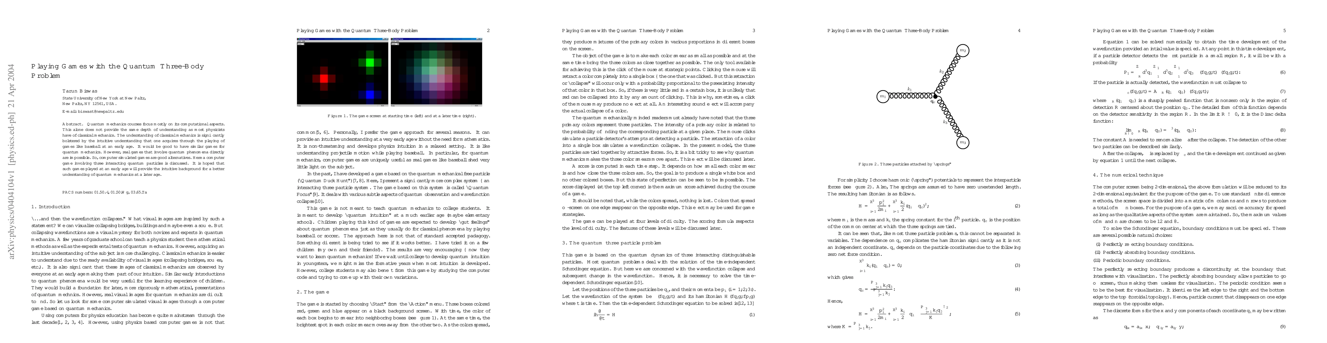 A computer game simulates three interacting quantum particles to help develop an intuitive understanding of quantum mechanics in early age players. The game aims to provide a foundation for a deeper comprehension of quantum mechanics later on.