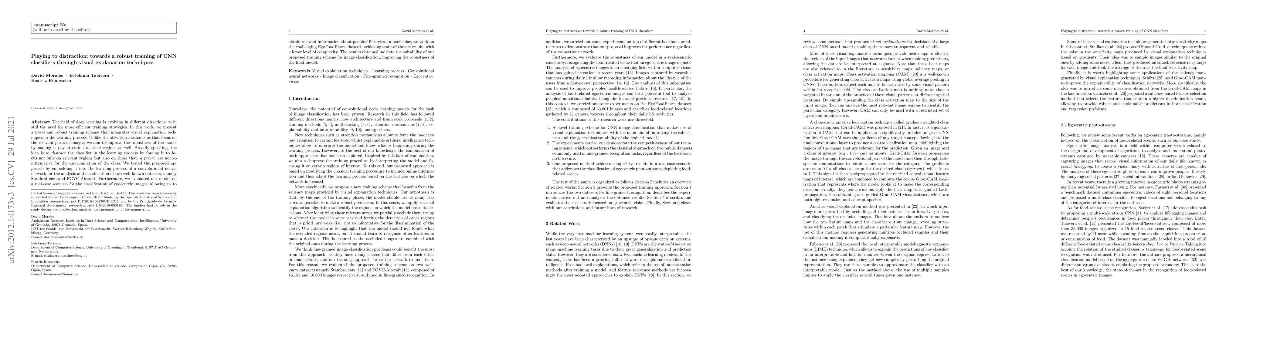 The field of deep learning is evolving in different directions, with still the need for more efficient training strategies. In this work, we present a novel and robust training scheme that integrates visual explanation techniques in the learning process. Unlike the attention mechanisms that focus on the relevant parts of images, we aim to improve the robustness of the model by making it pay attention to other regions as well. Broadly speaking, the idea is to distract the classifier in the learning process to force it to focus not only on relevant regions but also on those that, a priori, are not so informative for the discrimination of the class. We tested the proposed approach by embedding it into the learning process of a convolutional neural network for the analysis and classification of two well-known datasets, namely Stanford cars and FGVC-Aircraft. Furthermore, we evaluated our model on a real-case scenario for the classification of egocentric images, allowing us to obtain relevant information about peoples' lifestyles. In particular, we work on the challenging EgoFoodPlaces dataset, achieving state-of-the-art results with a lower level of complexity. The obtained results indicate the suitability of our proposed training scheme for image classification, improving the robustness of the final model.