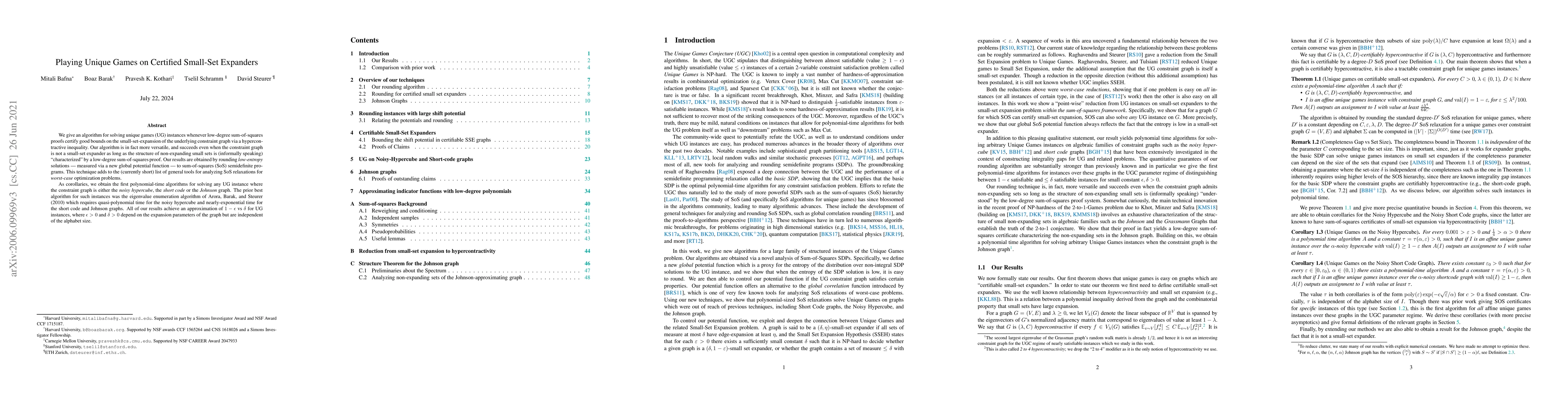 This paper presents an algorithm for solving unique game instances efficiently when low-degree sum-of-squares proofs certify good bounds on small-set expansion, even when the graph structure is characterized by such proofs. The method rounds low-entropy solutions to sum-of-squares semidefinite programs, yielding polynomial-time algorithms for specific graph instances, outperforming prior quasi-polynomial and exponential-time algorithms.