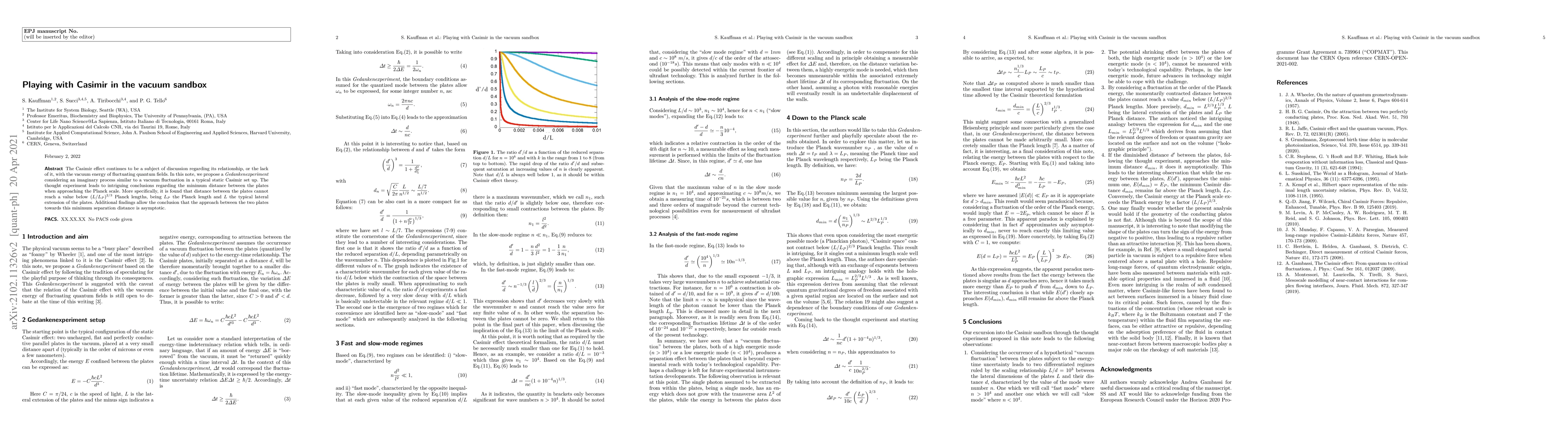 Researchers propose a thought experiment to study the Casimir effect in the vacuum, finding that plates cannot approach closer than $(L/L_P)^{2/3}$ Planck lengths, with an asymptotic approach towards this minimum distance.