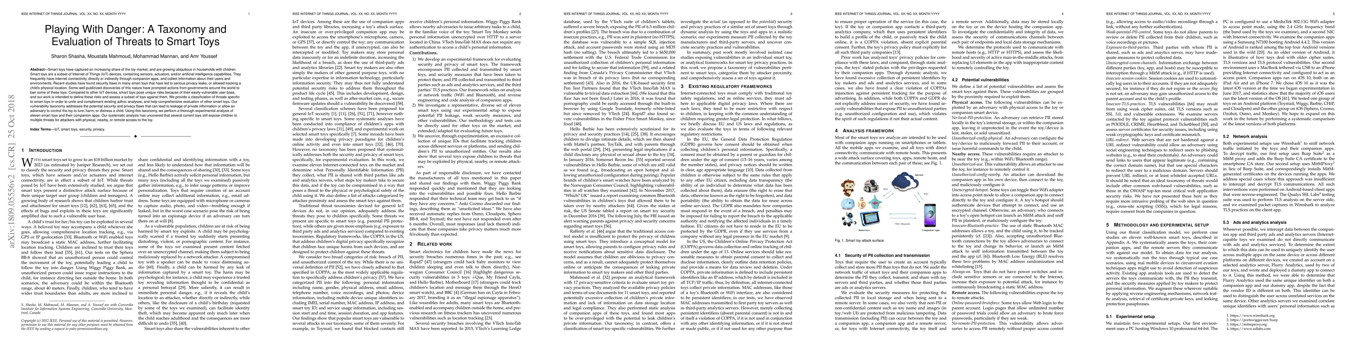 This paper classifies and evaluates security threats specific to smart toys, highlighting their unique risks due to vulnerable users. It presents a framework to systematically identify and assess potential privacy and security flaws, revealing significant vulnerabilities in a tested subset of smart toys that expose children to various threats.