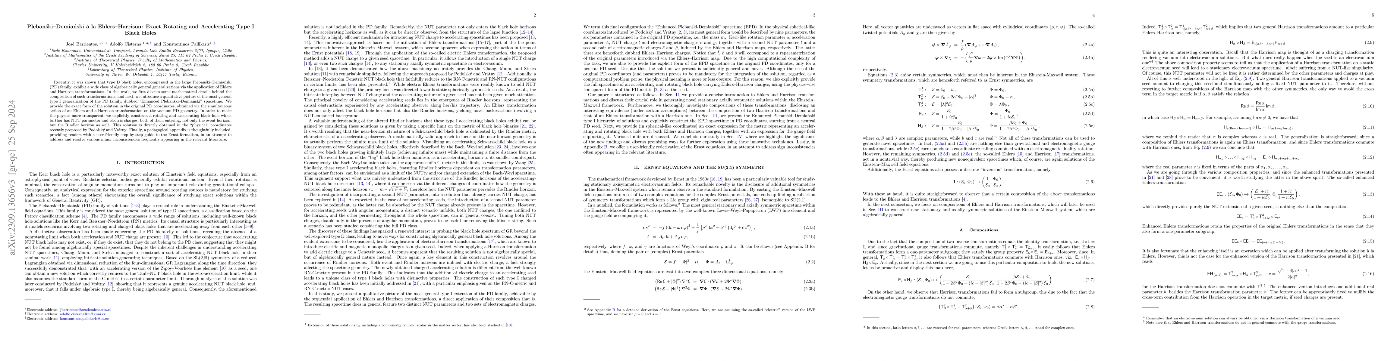 This paper explores the mathematical generalizations of Pleban\'ski-Demia\'nski type D black holes using Ehlers and Harrison transformations, introducing an "Enhanced Pleban\'ski-Demia\'nski" spacetime. It presents an exact solution for a rotating, accelerating black hole with NUT parameters and electric charges in physical coordinates, and includes a pedagogical appendix on the Ernst formalism.