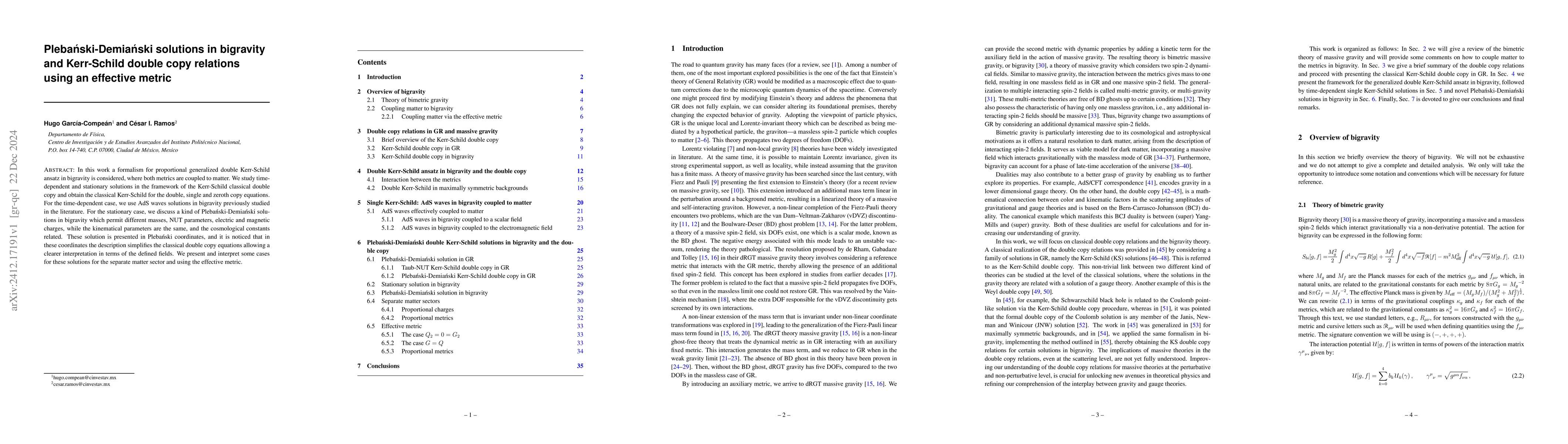 This paper explores a generalized double Kerr-Schild ansatz in bigravity, presenting time-dependent and stationary solutions through the classical double copy framework. It introduces Plebański-Demiański-like solutions in bigravity, highlighting simplifications in Plebański coordinates that clarify the interpretation of the effective metric.