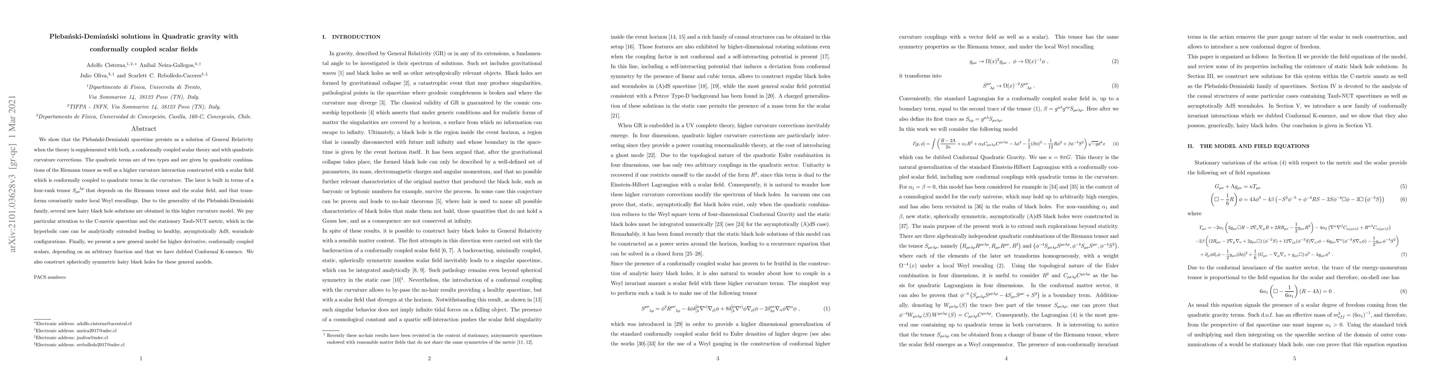 This paper demonstrates that the Plebanski-Demianski spacetime remains a solution in quadratic gravity with conformally coupled scalar fields, revealing new hairy black hole solutions, including the C-metric and Taub-NUT metrics, and introducing a new model for higher derivative, conformally coupled scalars called Conformal K-essence.