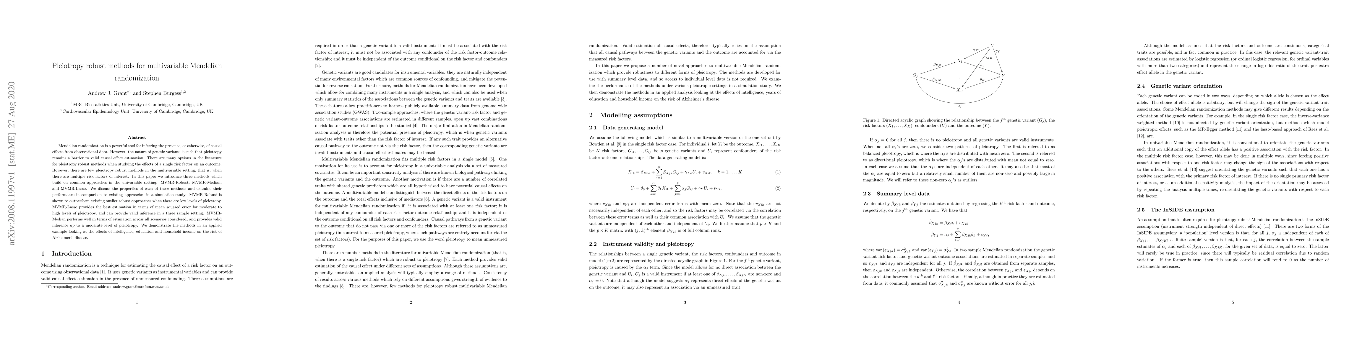 This paper introduces three pleiotropy robust methods—MVMR-Robust, MVMR-Median, and MVMR-Lasso—for multivariable Mendelian randomization to infer causal effects from observational data. The methods outperform existing approaches in various scenarios, with MVMR-Robust excelling under low pleiotropy, MVMR-Lasso providing the best mean squared error under moderate to high pleiotropy, and MVMR-Median maintaining good performance across different levels of pleiotropy.