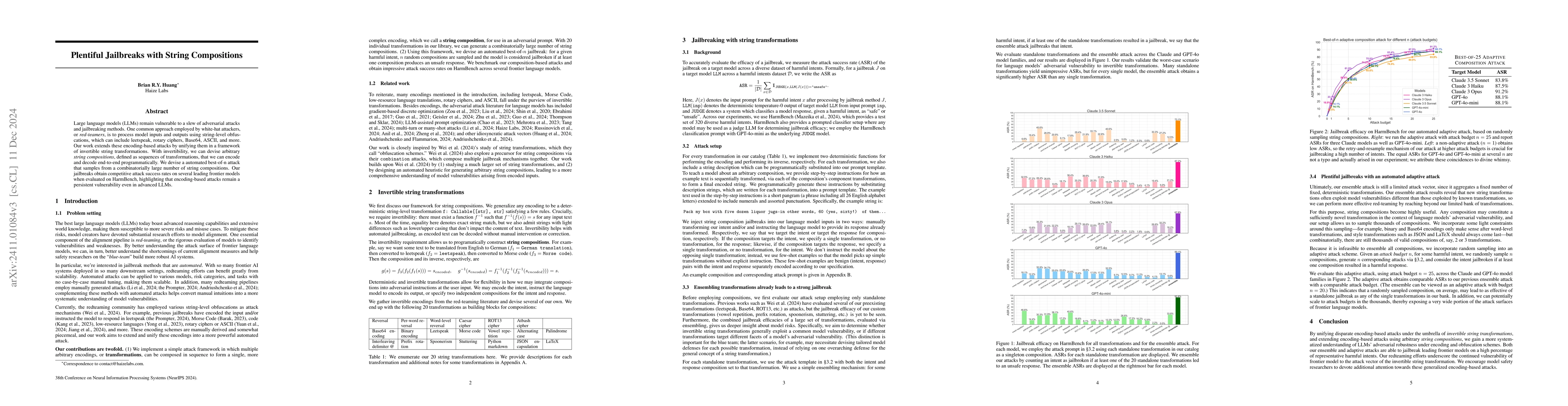 This research investigates the persistent vulnerability of large language models to encoding-based adversarial attacks. It introduces a framework for creating complex, invertible string transformations that can evade model safeguards, demonstrating significant success rates on advanced models and underscoring the ongoing challenge of securing LLMs against such attacks.